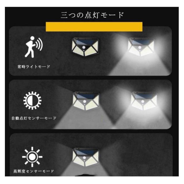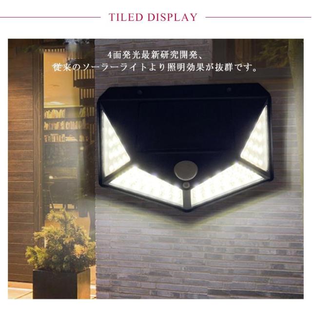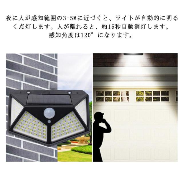 センサーライト 屋外 LED 人感 高輝度 明るい 防水 玄関灯 壁掛け照明 ポーチライト ソーラーライト 人感センサー 広範囲 照射 防犯 照明 玄関 ガレージ 100LED