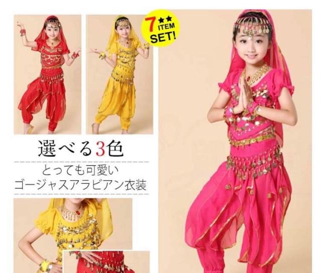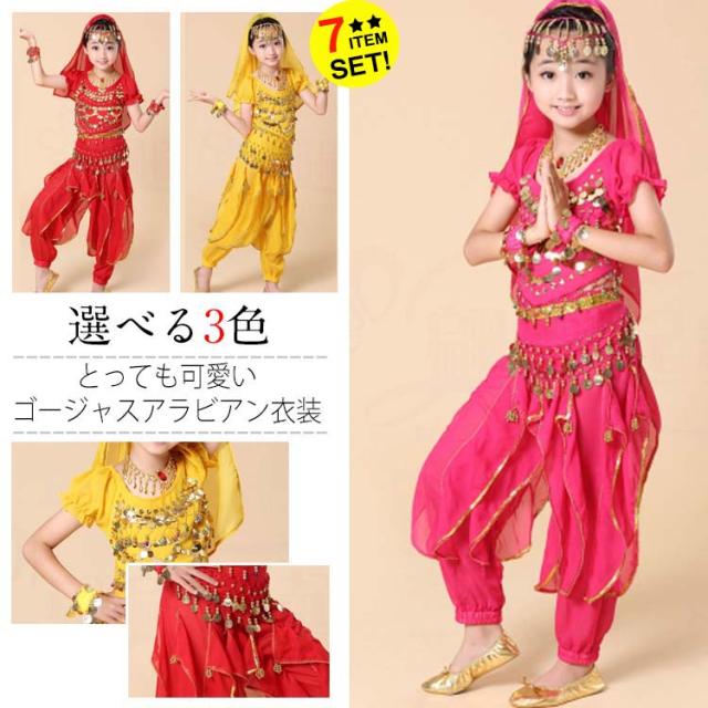 アラジン衣装/キッズ/女の子/ガールズ/半袖アラビア衣装/7点セット/ベリーダンス/子供仮装/ハロウィン衣装/アラビアン/ダンス