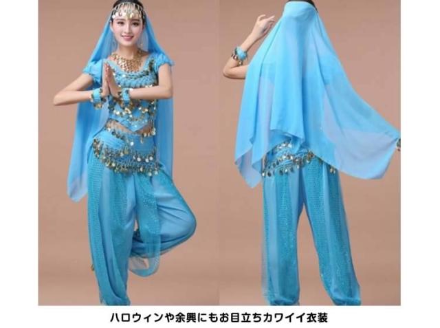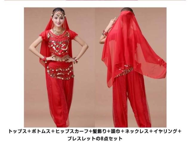 アラジン衣装/レディース/女性/半袖アラビア衣装/8点セット/ベリーダンス/ジャスミンコスチューム/レッスン着/ダンス衣装/ハー