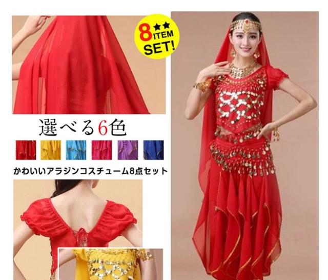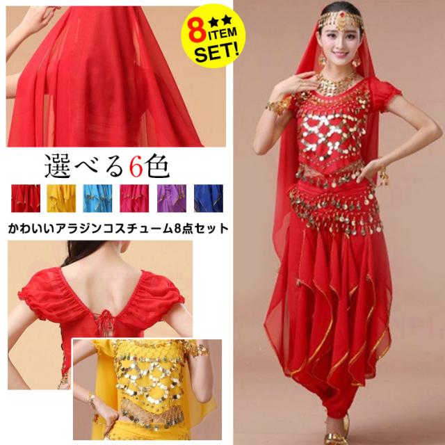 アラジン衣装/レディース/女性/コスチューム衣装/ハロウィン衣装/8点セット/ベリーダンス/ドレス/ダンス衣装/仮装/大人用/cosplay/アニメ
