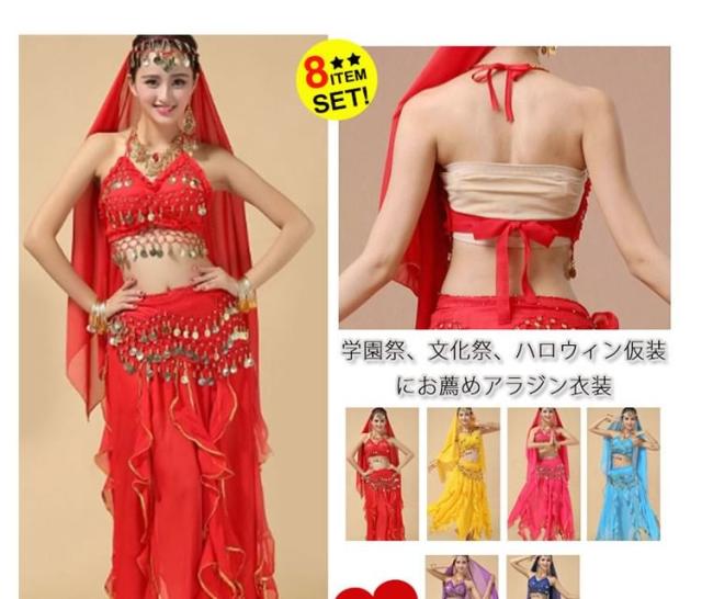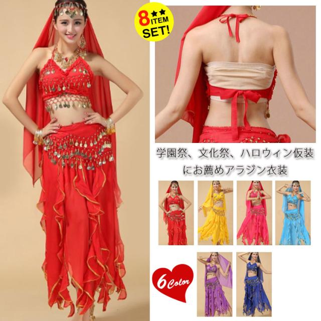 アラジン衣装/レディース/女性/アラビア衣装/コスチューム衣装/8点セット/ベリーダンス/クリスマス衣装/練習着/ダンス衣装/ス