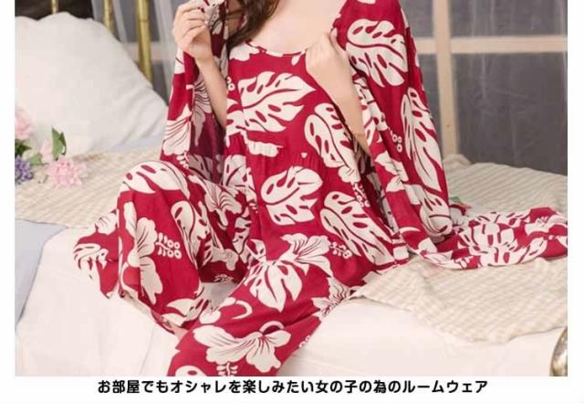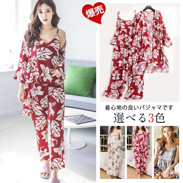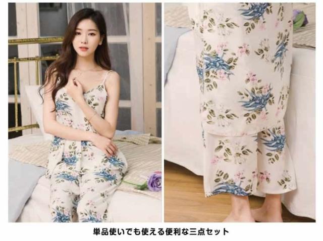 パジャマ/レディース/女性/セットアップ/上下セット/3点セット/上下+キャミ/ルームウェア/寝巻き/部屋着/リラックスウェア/花柄プリント