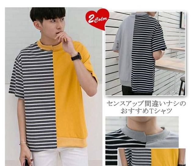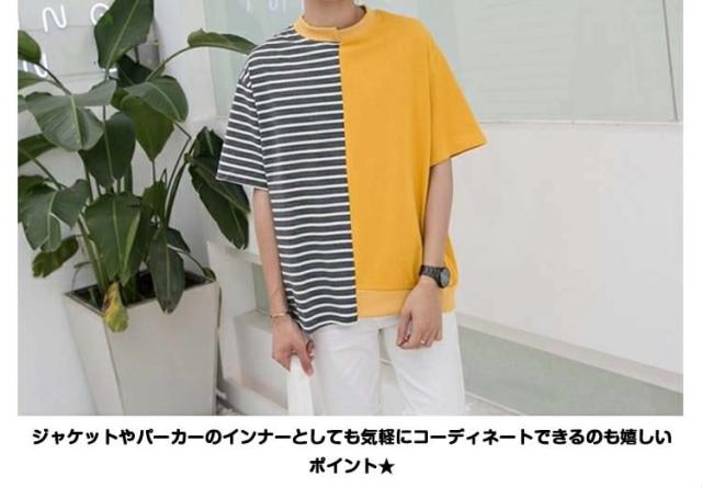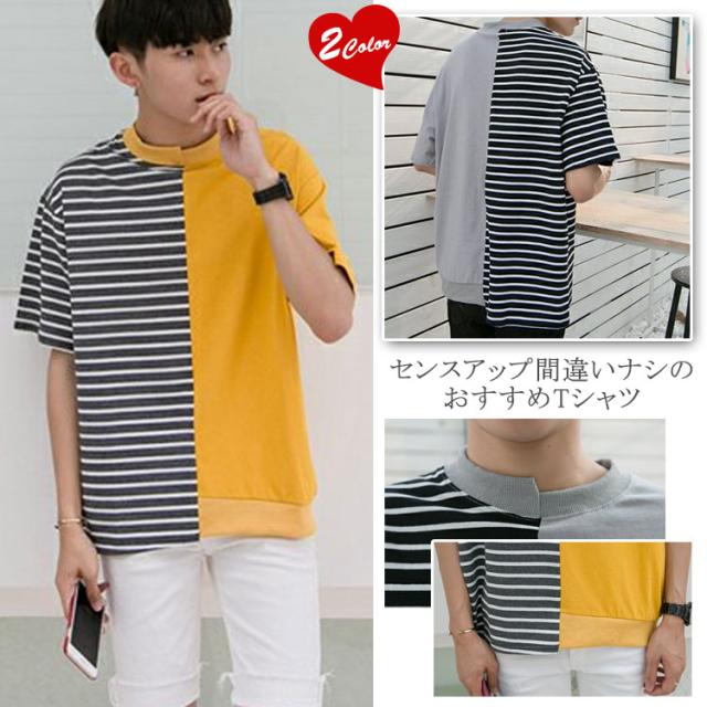 Tシャツ/メンズ/カットソー/ロゴTシャツ/ボーダー柄Tシャツ/ゆるTシャツ/半袖Tシャツ/切り替えTシャツ/サマーTシャツ/カジュアルTシャツ/クルーネック