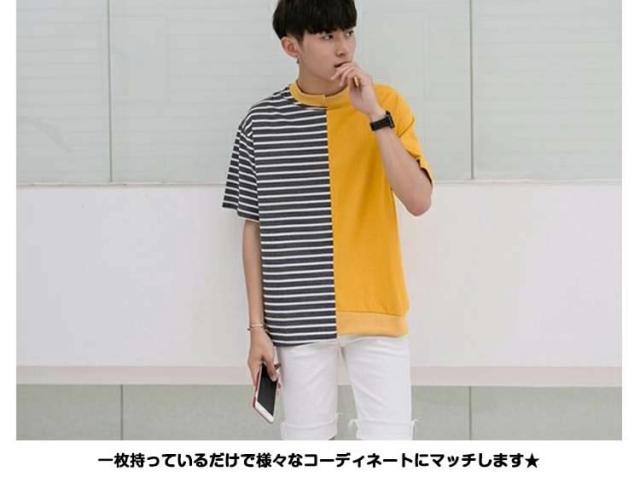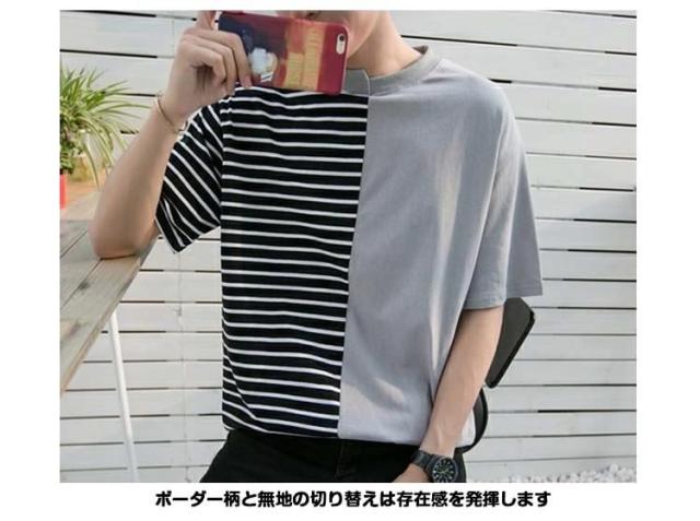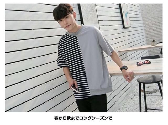 Tシャツ/メンズ/カットソー/ロゴTシャツ/ボーダー柄Tシャツ/ゆるTシャツ/半袖Tシャツ/切り替えTシャツ/サマーTシャツ/カ