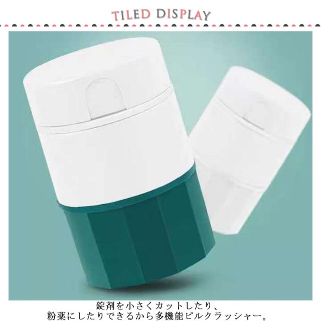 | 1台4役!薬磨り潰し、錠剤を2分割、薬ケースとして活躍。 錠剤を小さくカットしたり、粉薬にしたりできるから多機能ピルクラッシャー。 薬入れも装備しているから、とても便利。 子供や高齢者など大きい錠剤がに苦手な方に大変役たつ便利グッズ。 ネコやサカナなどペットや、日常薬など色々なシーンで大活躍。 コンパクトなサイズなので、持ち運びにとても便利。 | |