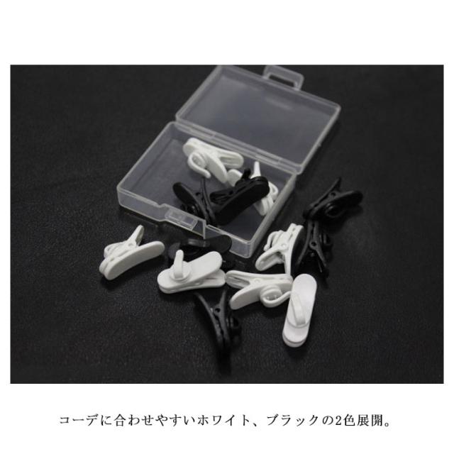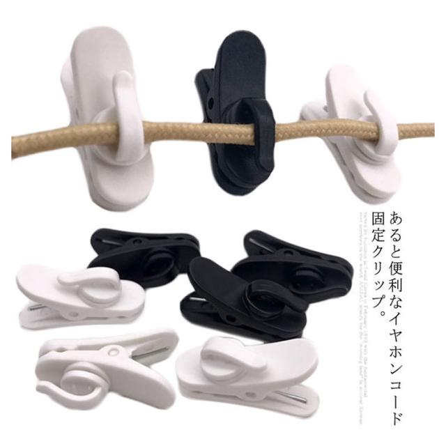 | あると便利なイヤホンコード固定クリップ。 イヤホン紛失やイヤホンコード引っ掛かり防止に役たつマルチクリップ。 イヤホン着用時、服に留めて、コードのゆとりがなくなり、通学・通勤時、コードが他の人の荷物などに引っ掛かることを防ぎます。 クリップが360度回転するので、付け方を考えず、絡まりにくく自由度高い。 コーデに合わせやすいホワイト、ブラックの2色展開。 | |