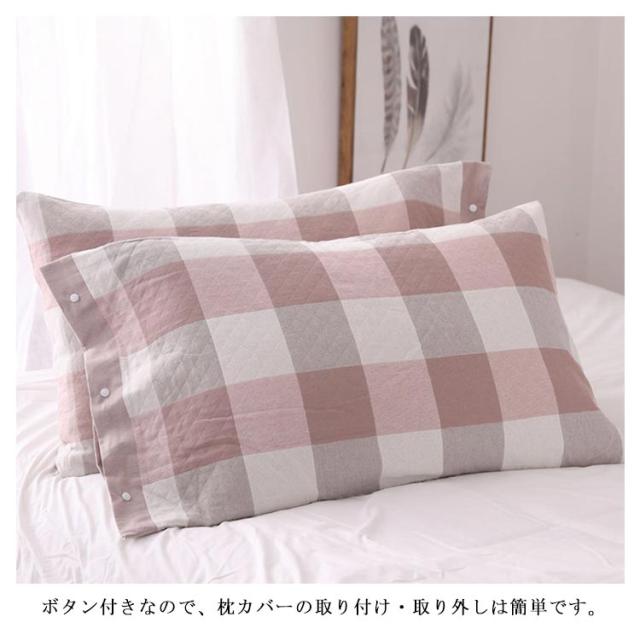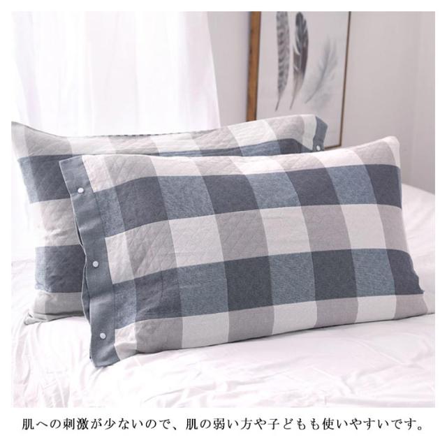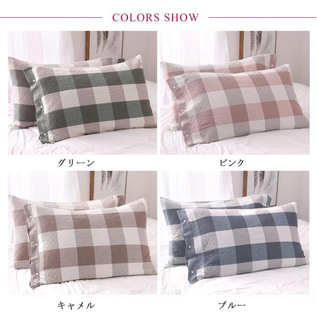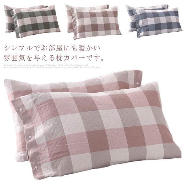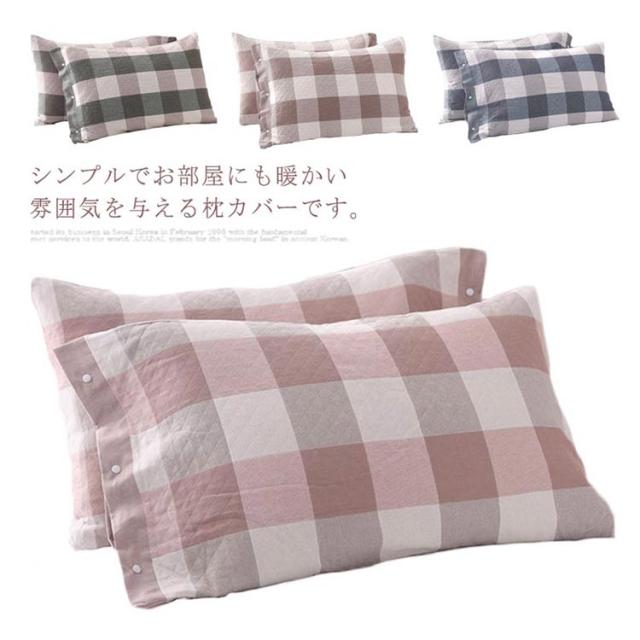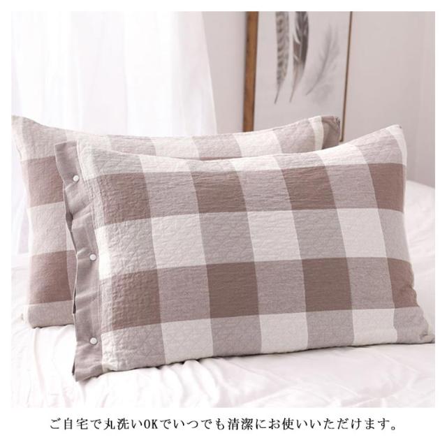 枕カバー 2枚セット チェック柄 ピローケース 綿100% 軽量 洗える 柔らかい 家庭用 無地 汚れ防止 通気性 シンプル お洒落