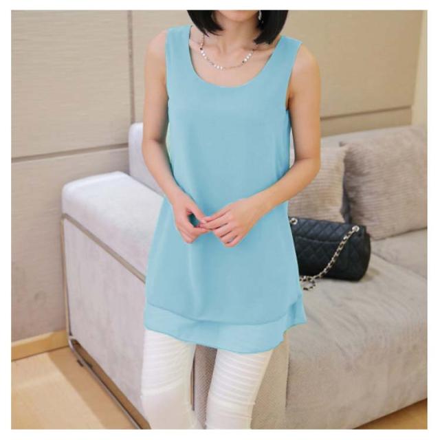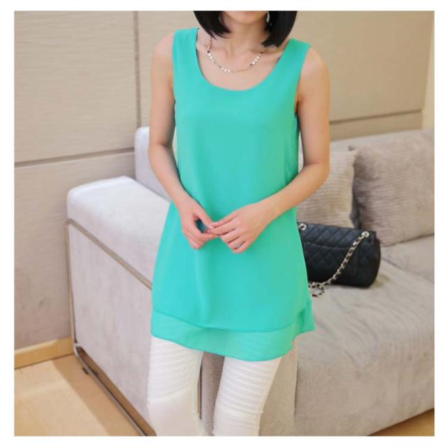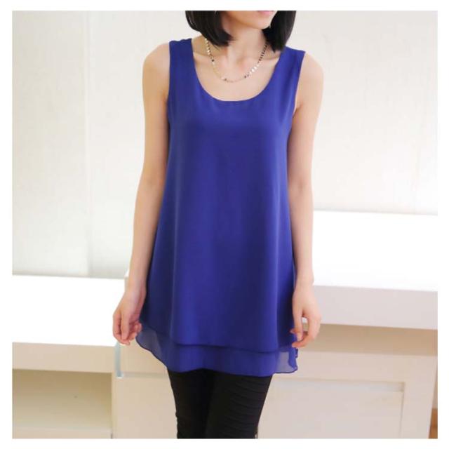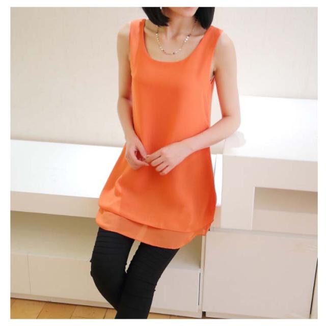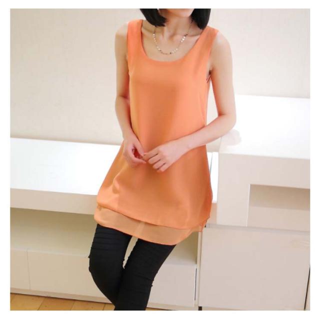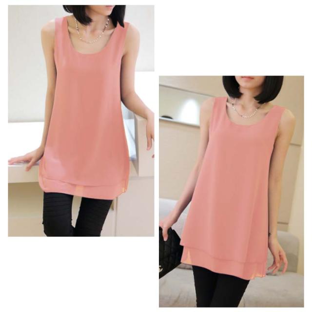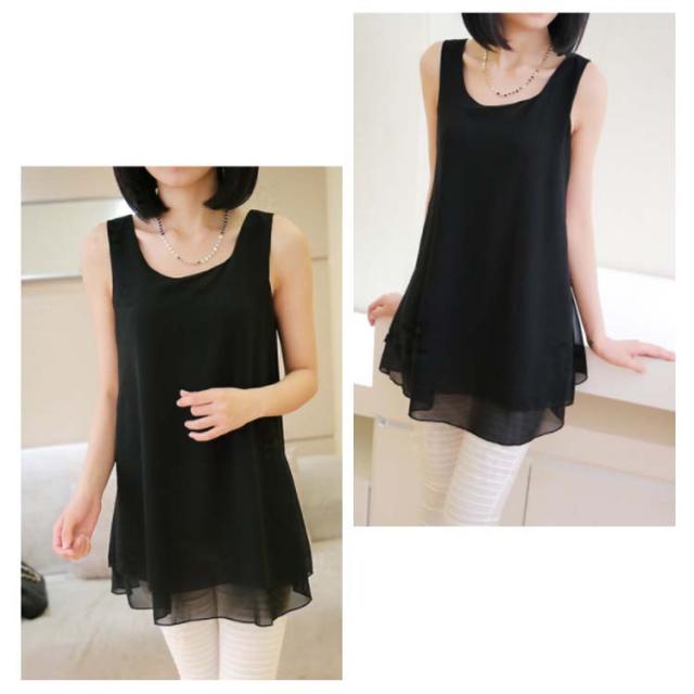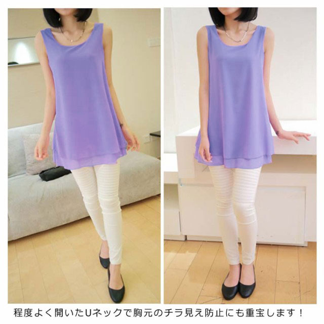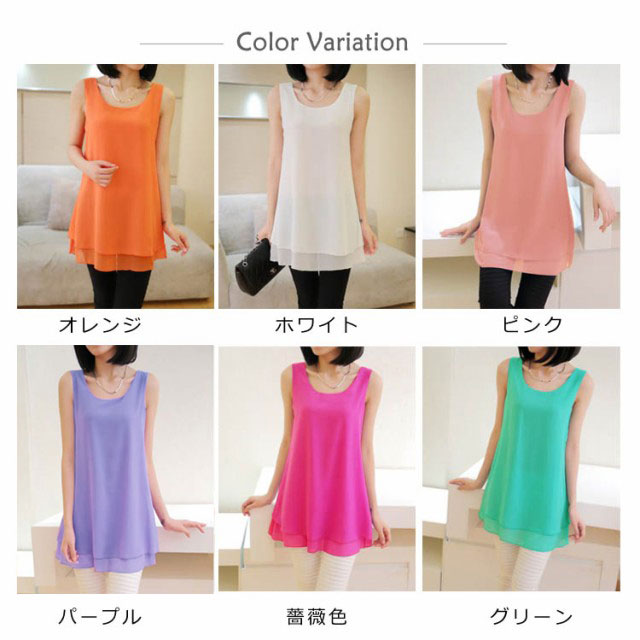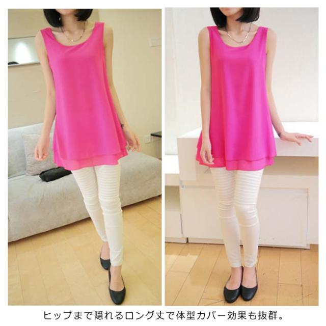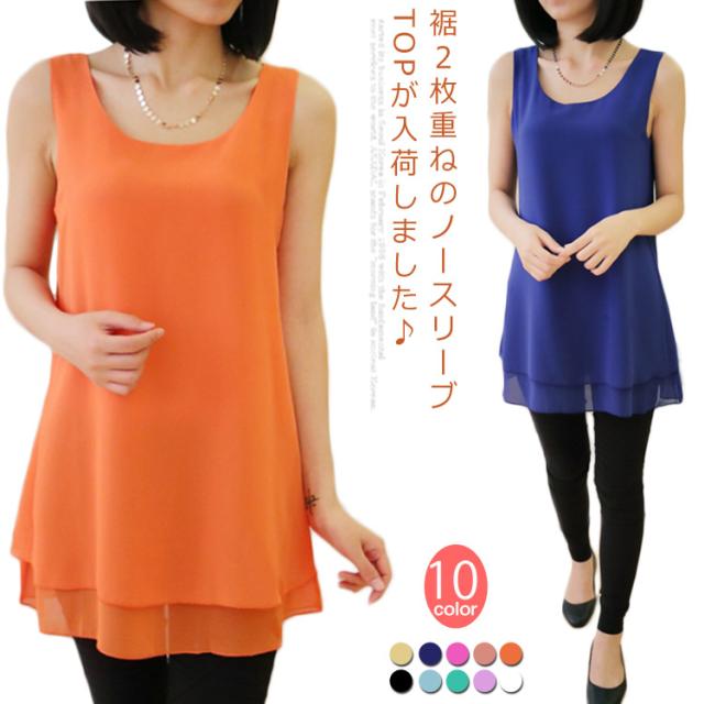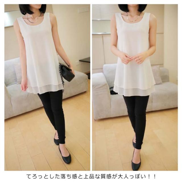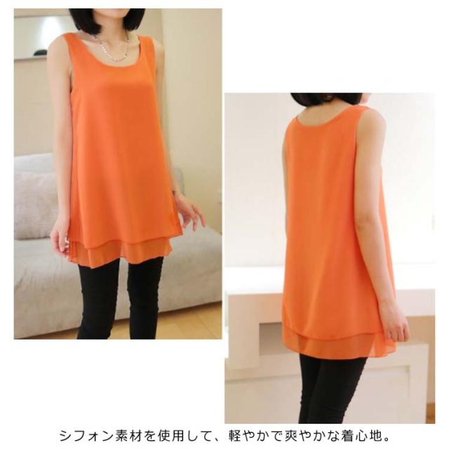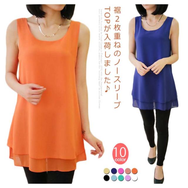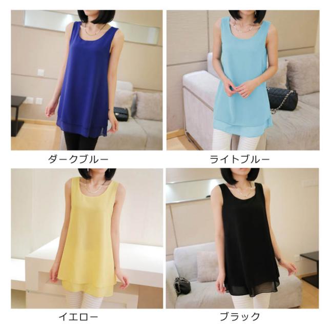 全10color×9size!ブラウス タンクトップ レディース 2枚重ね ロング丈 シフォンタンクトップ シフォン トップス ノースリーブ インナー 軽量 夏 オシャレ 大きいサイズ ゆったり