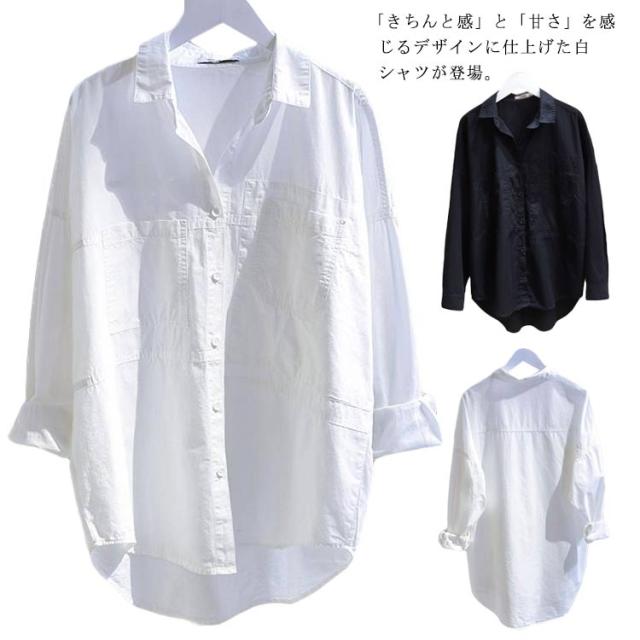 送料無料 春シャツ シャツ レディース 白シャツ アシメトリー カジュアルシャツ 長袖 無地シャツ ロングシャツ 白 ホワイト 春服 春物 シンプル おしゃれ