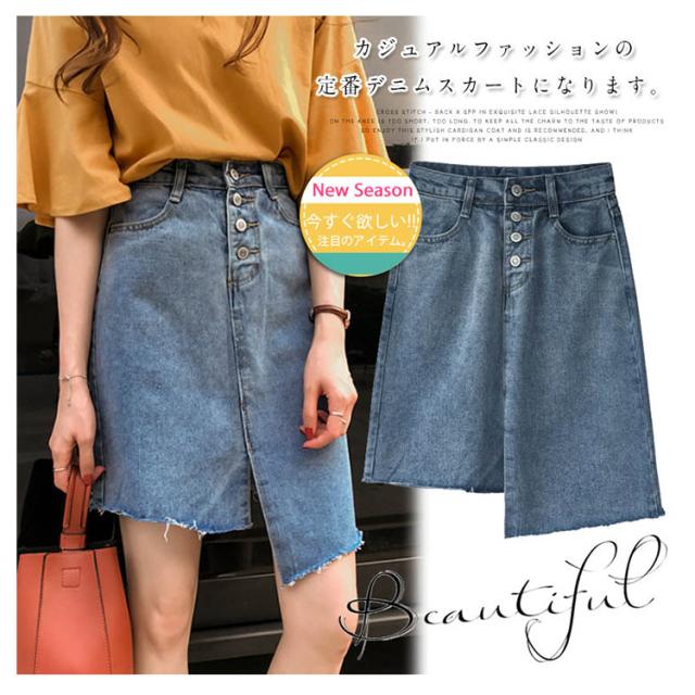 デニムスカート タイトスカート ミドル丈 レディース ヘムライン