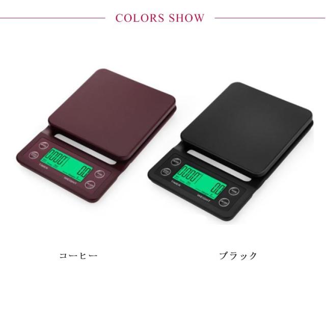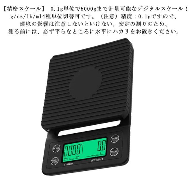 電子スケール デジタルスケール、コーヒースケール、タイマー付きポータブル電子 デジタルキッチンスケール、高精度LED電子スケール コンパクト 電子スケール 単位切替 持ち運び 多機能搭載