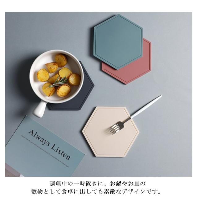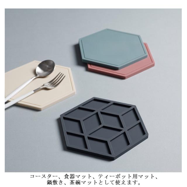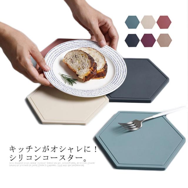 送料無料 コースター 鍋敷き シリコンマット 2枚セット コップ敷き 茶碗敷き 耐熱 滑り止め 六角形 キッチン 収納便利 乾燥 水切り 洗える 北欧デザイン おしゃれ 台所シート カップシート 耐熱皿マット 絶縁 柔軟 小物置き かわいい