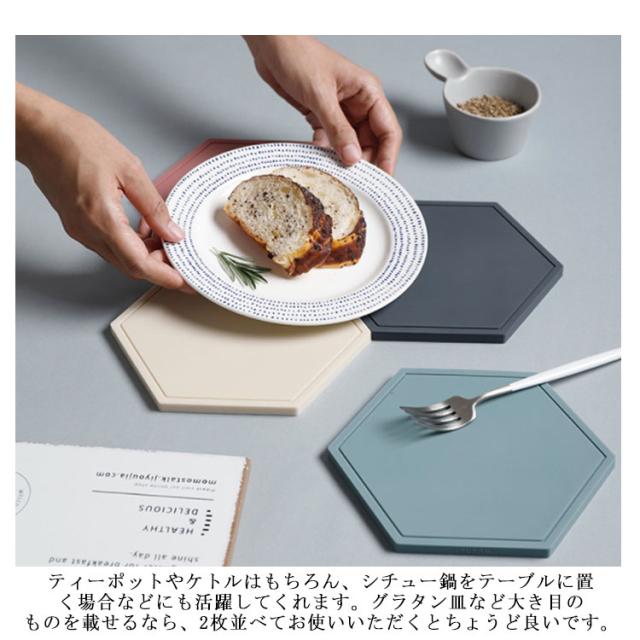 | 調理中の一時置きに、お鍋やお皿の敷物として食卓に出しても素敵なデザインです。 ティーポットやケトルはもちろん、シチュー鍋をテーブルに置く場合などにも活躍してくれます。グラタン皿など大き目のものを載せるなら、2枚並べてお使いいただくとちょうど良いです。 ご家族へ、祝い日、プレゼントとして最高だと思います。 | |