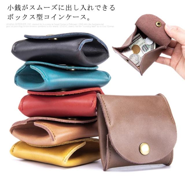 送料無料 ボックス型コインケース 小銭入れ コンパクト 手のひらサイズ BOX型小銭入れ 本革 スクエア型 薄型 レディース メンズ イヤホンポーチ アクセサリー 収納 プレゼント