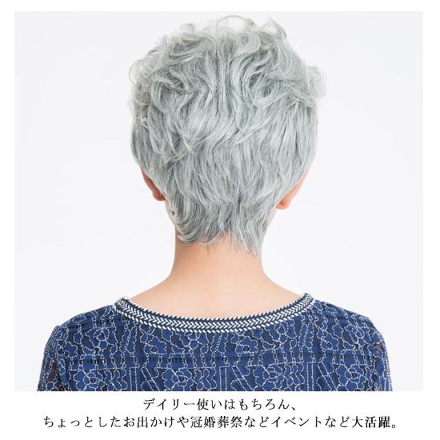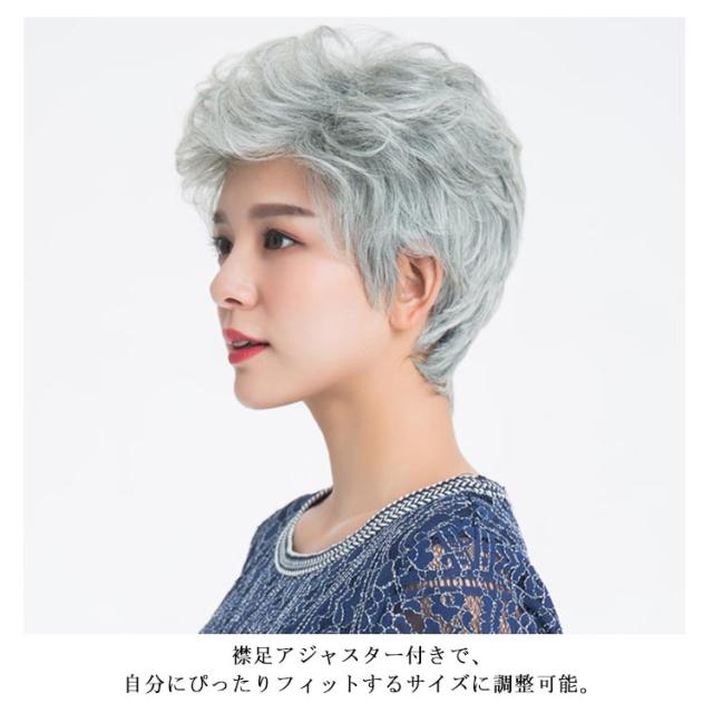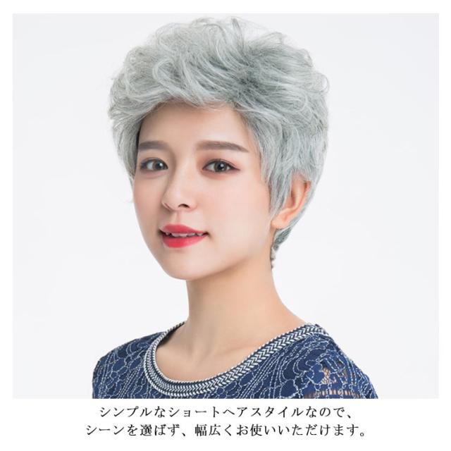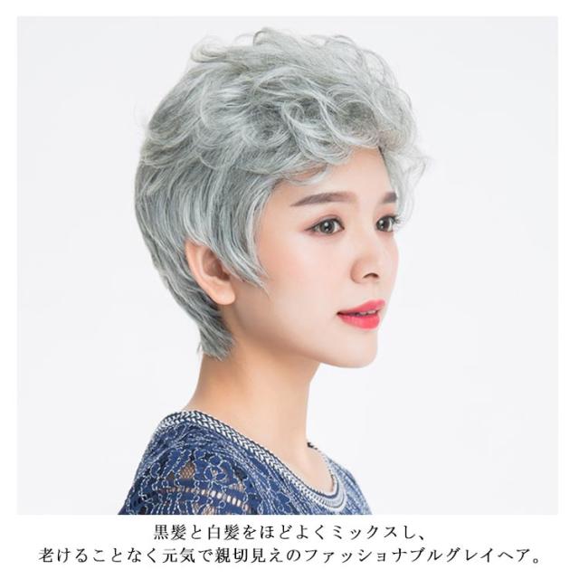 送料無料 全2カラー ミセス ウィッグ フルウィッグ 白髪 グレイヘア ウェーブ かつら 優雅 ショート 婦人用かつら つけ毛 コスプレ 演劇 60歳 70歳 80歳 90歳
