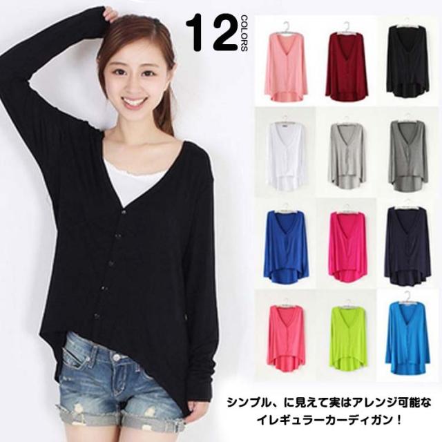 カーディガン 長袖 レディース 薄手カーディガン イレギュラーカーディガン Vネック モーダルカーディガン ヘムカーディガン 羽織り 2017春