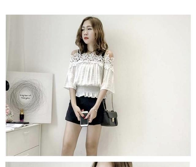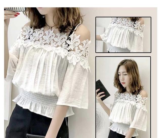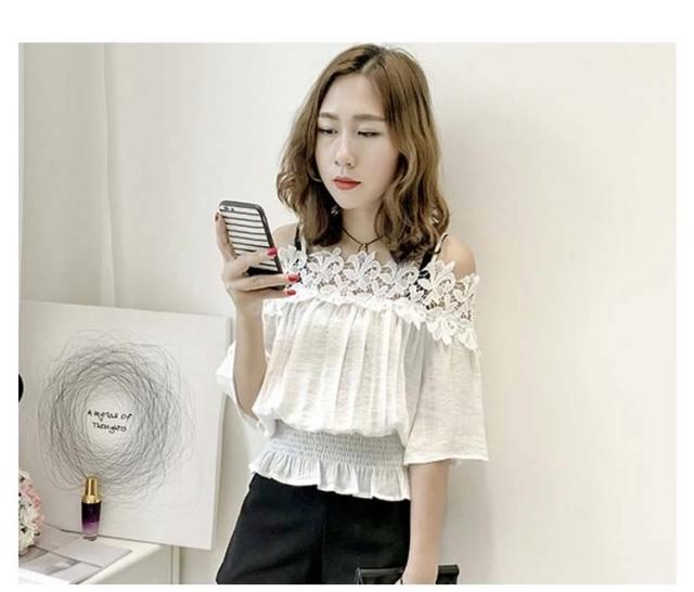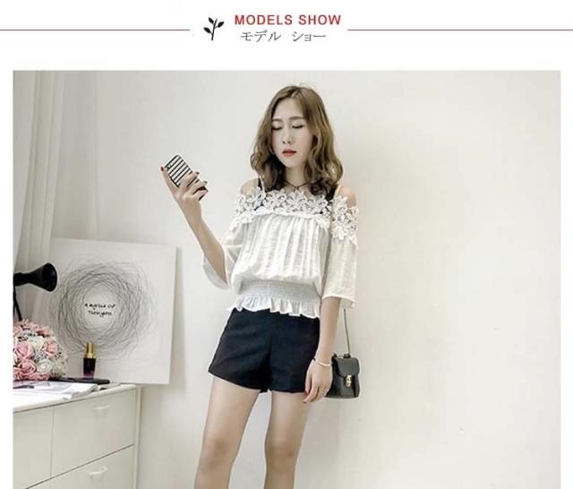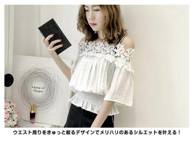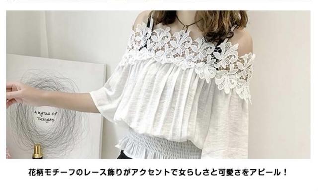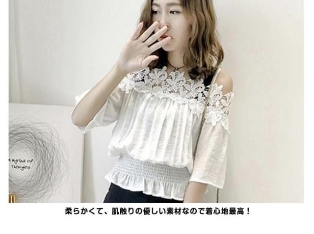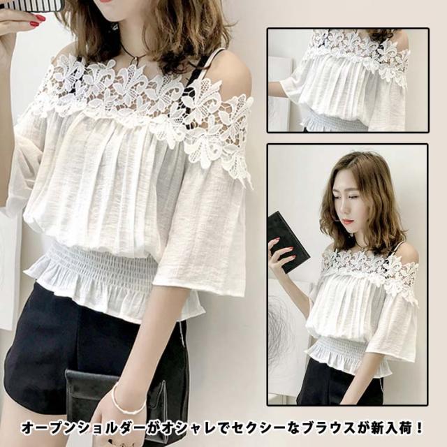 レディース トップス ブラウス レースブラウス オープンショルダー とろみシャツ 透かし彫り 透け感 お洒落 2017春新作