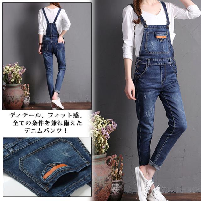 サスペンダーパンツ デニムパンツ レディース タイトデニム 美尻パンツ 美脚パンツ ウォッシュ加工 吊りパンツ つなぎパンツ ジ