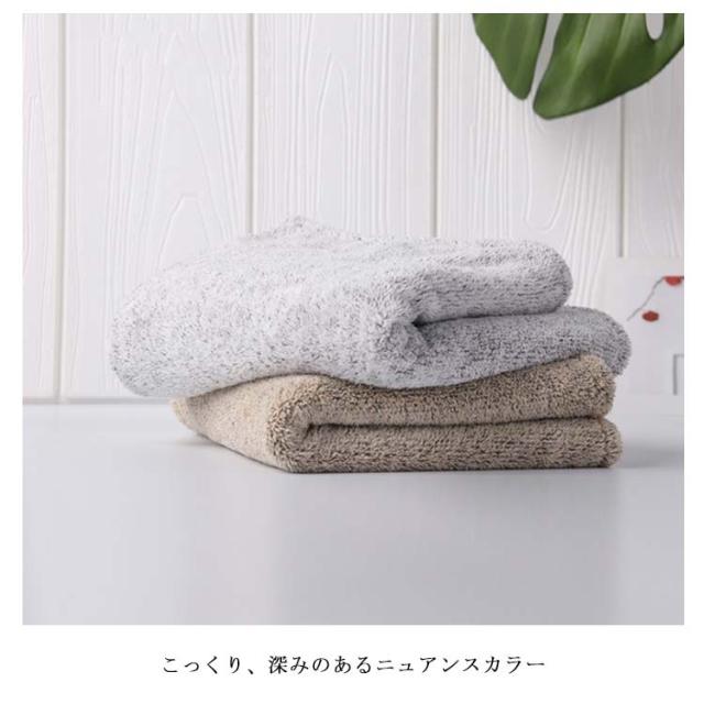 | 重厚感あるたたずまい。 こっくり、深みのあるニュアンスカラー 細い糸で織っているから、触れた時の感触と吸水性が抜群です。 ※タオルの特性上、初めは色落ちする可能性がございます。必ず他の洗濯物とは分け、たくさんのお水で、単独でお洗濯下さい。 | |