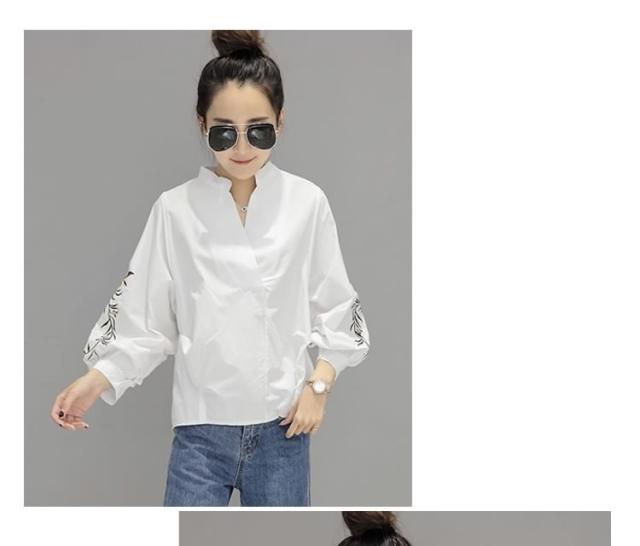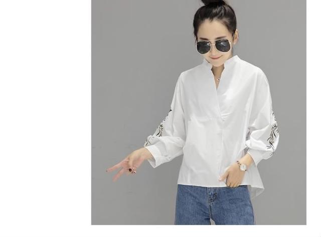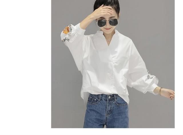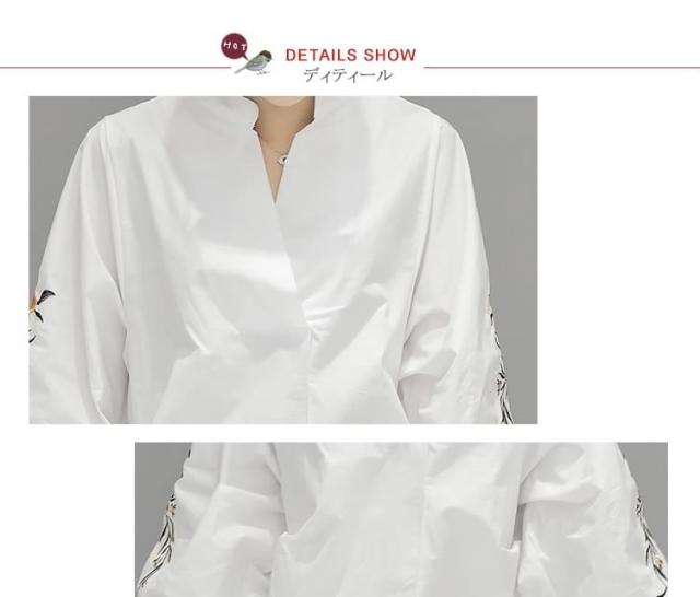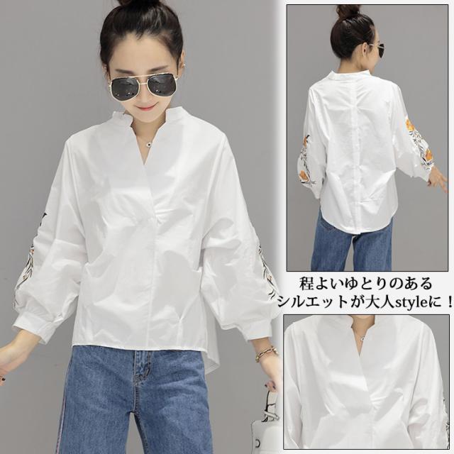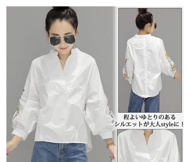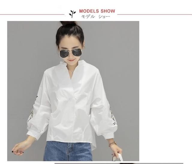 長袖ブラウス スキッパーブラウス シャツブラウス レディース バルーン袖 ボリューム袖 Vネック 花柄刺繍 フェミニン 上品 2017春新作
