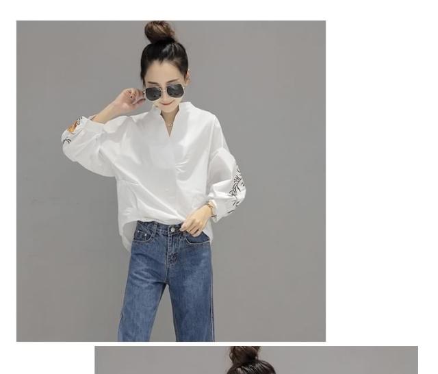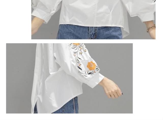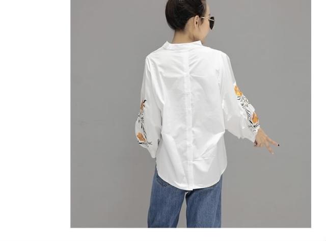 長袖ブラウス スキッパーブラウス シャツブラウス レディース バルーン袖 ボリューム袖 Vネック 花柄刺繍 フェミニン 上品 2