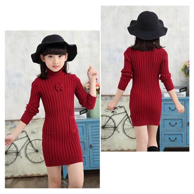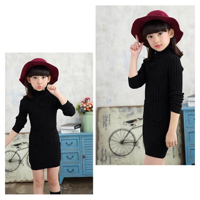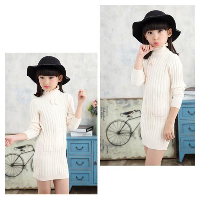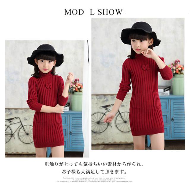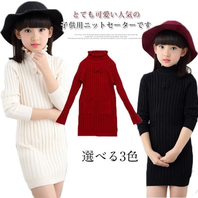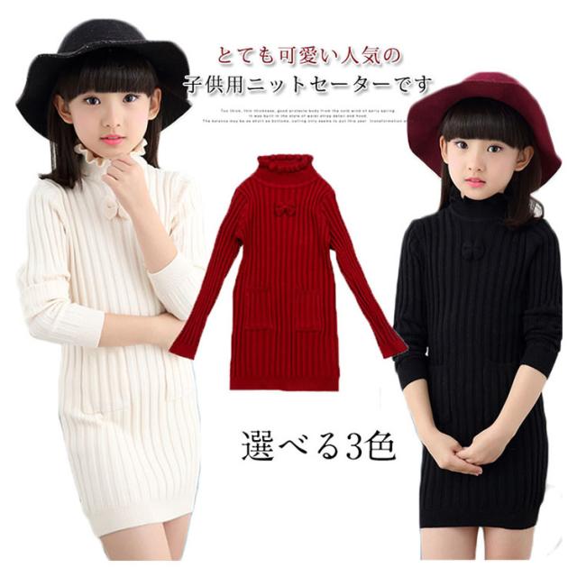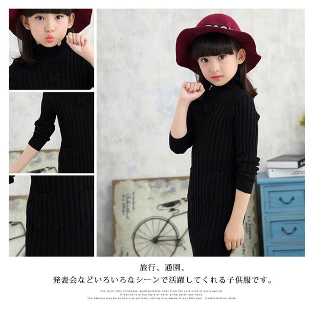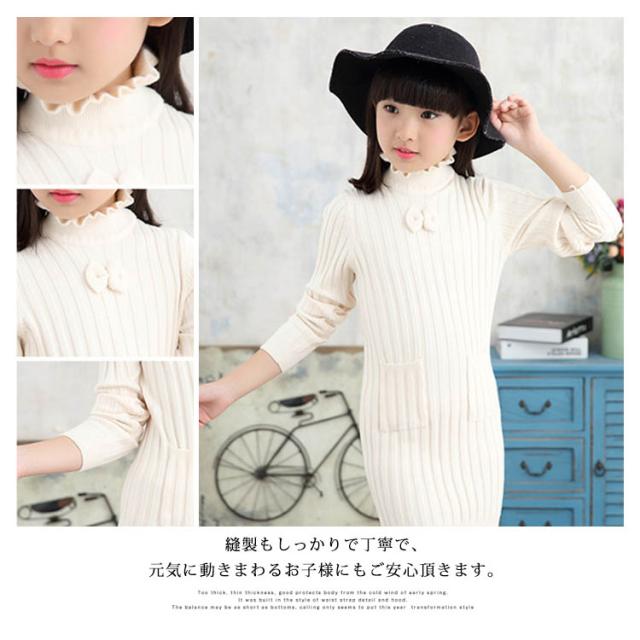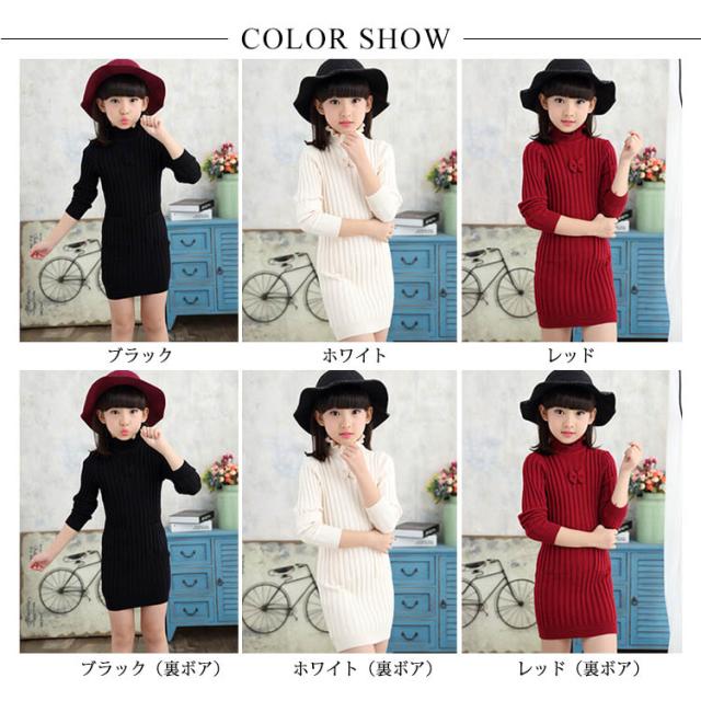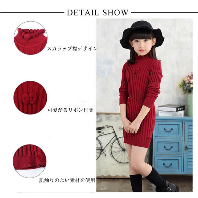 子供服 ニットワンピース 裏起毛 ニットトップス セーター 女の子 プルオーバー 裏ボア ハイネック スカラップ襟 ジュニア服 インナー 秋冬 厚手 暖か 可愛い 新作 120 130 140 150 160 170
