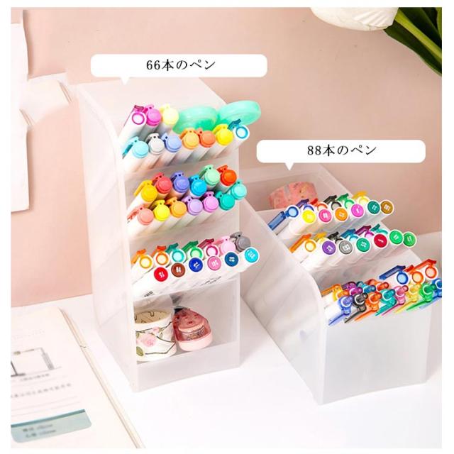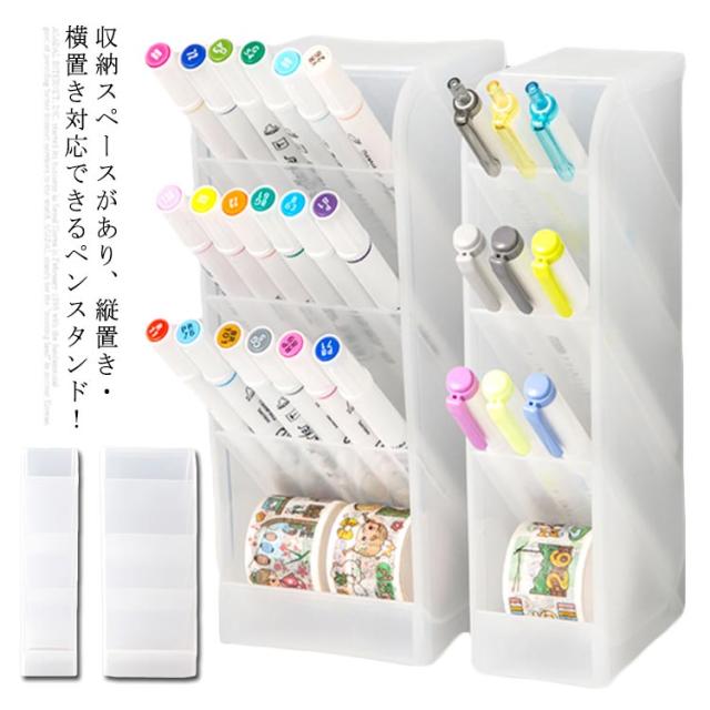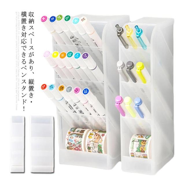 | 収納スペースがあり、縦置き・横置き対応できるペンスタンド! シンプルでおしゃれなデザインでデスクやテーブル周りをすっきり収納できる卓上収納。 頑丈なPP製なので、半透明で文房具はすっきり見えます。 棚が深く仕切られているので、ペンなどの文房具を分類して収納できます。 スペースに合わせて縦置き・横置き両用対応で、デスク周りを整理整頓! | |