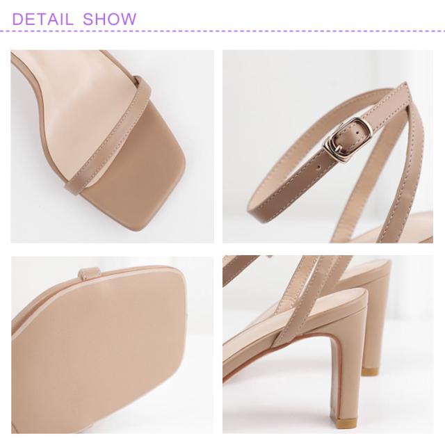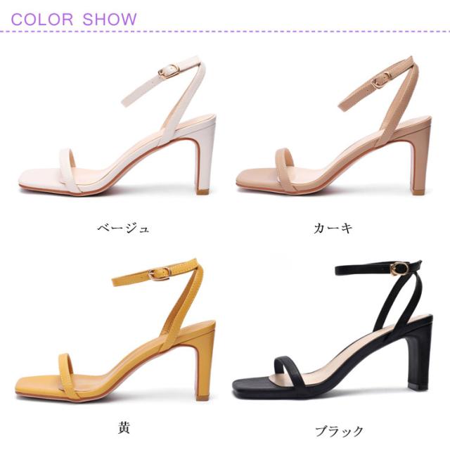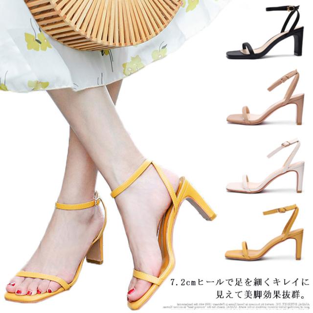 | 7.2cmヒールで足を細くキレイに見えて美脚効果抜群。 太めのハイヒールだから歩きやすくて疲れにくい女らしいサンダル。 トレンド感と美しさを引き立て注目のスクエアトゥ。 足首をしっかりホールドしてくれるアンクルストラップは長さ調節可能。 シンプルなのでいろんなアイテムと相性が良くハイヒール。 | |