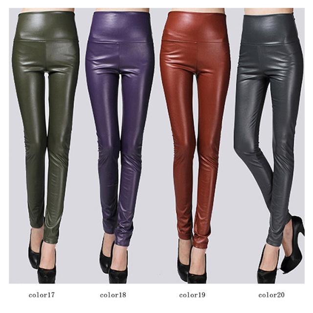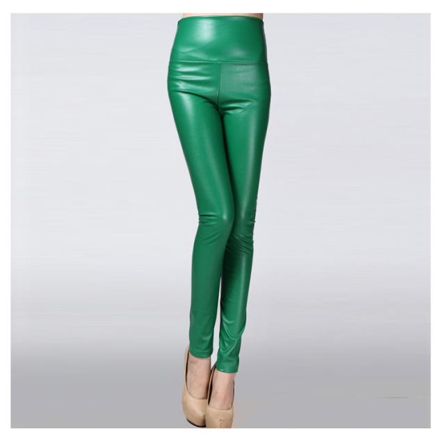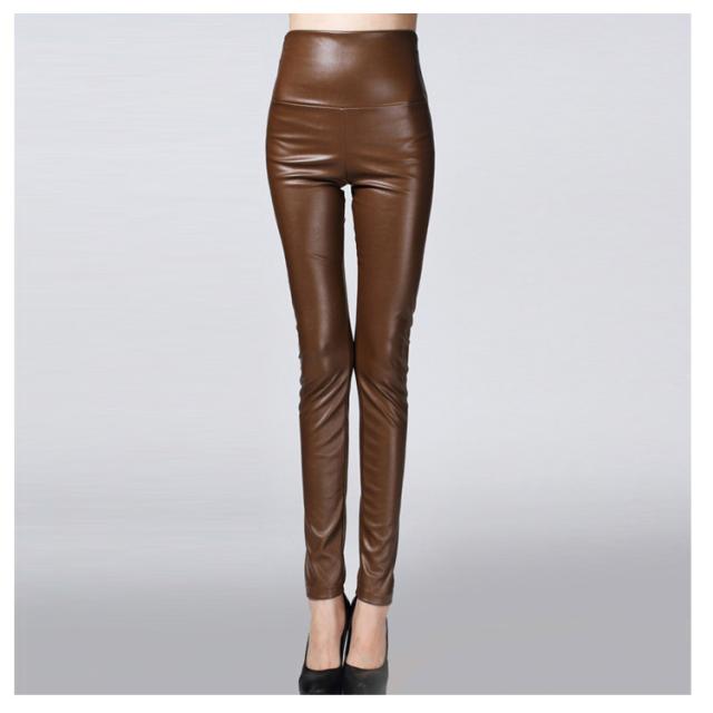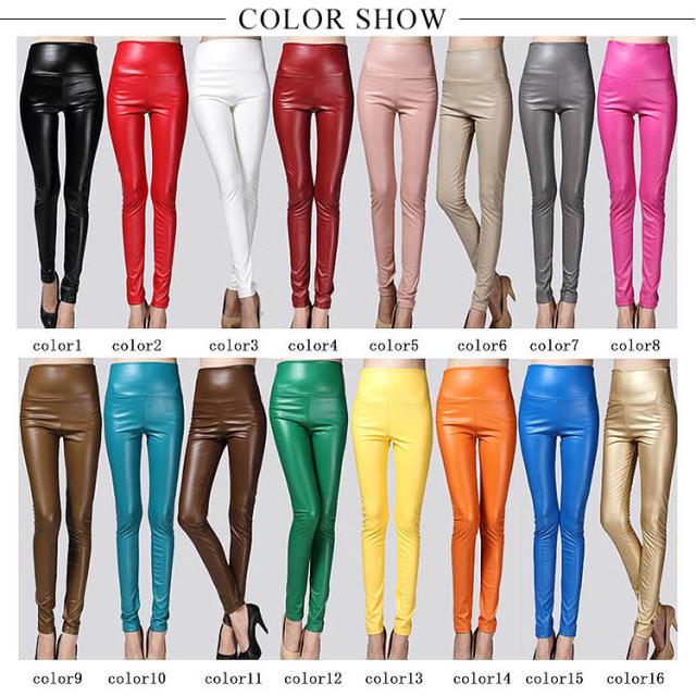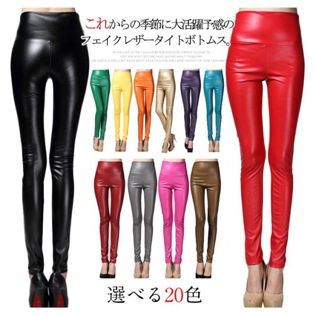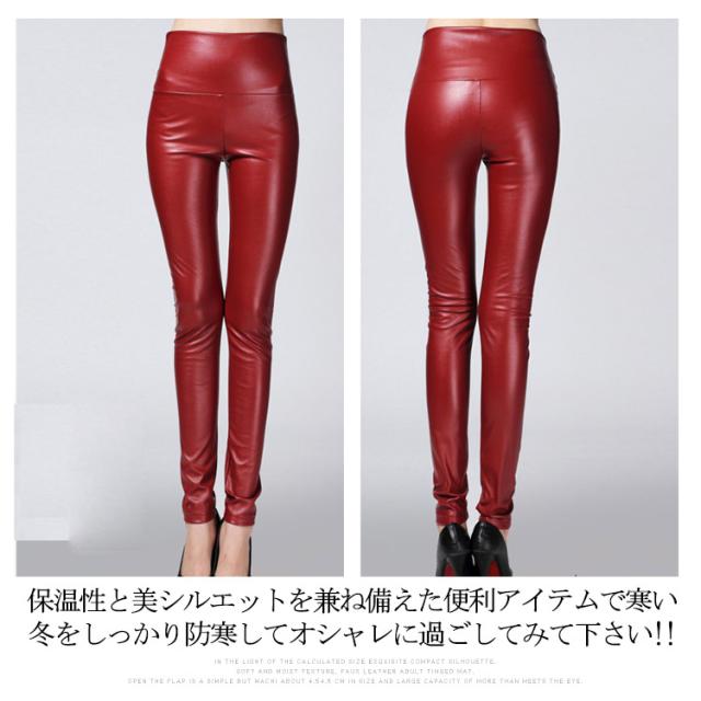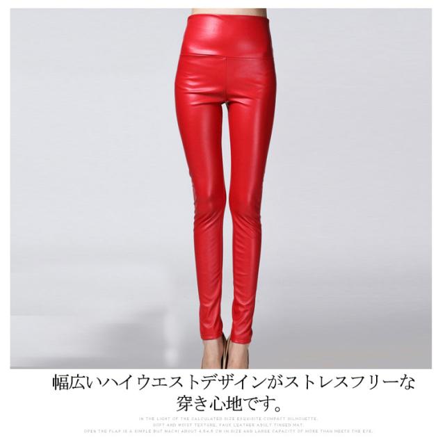 ハイウエストが脚も細く長く魅せて PU フェイクレザー ボトムス タイトパンツ 大きサイズ 秋 冬