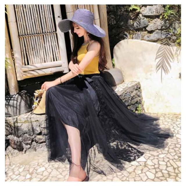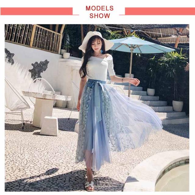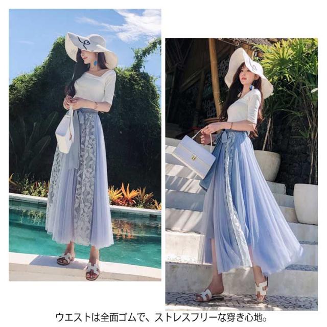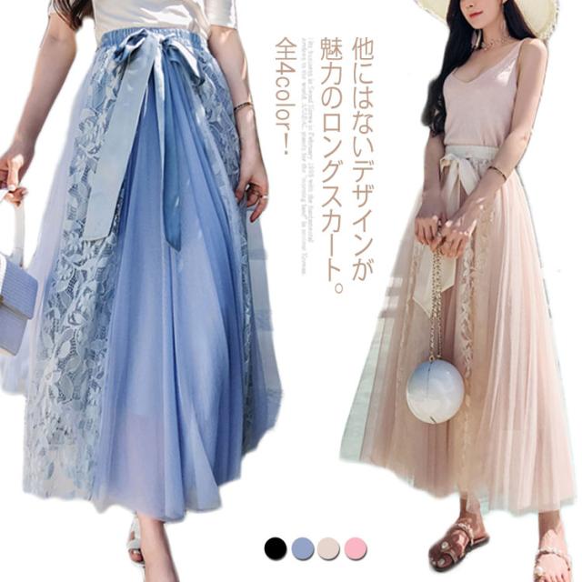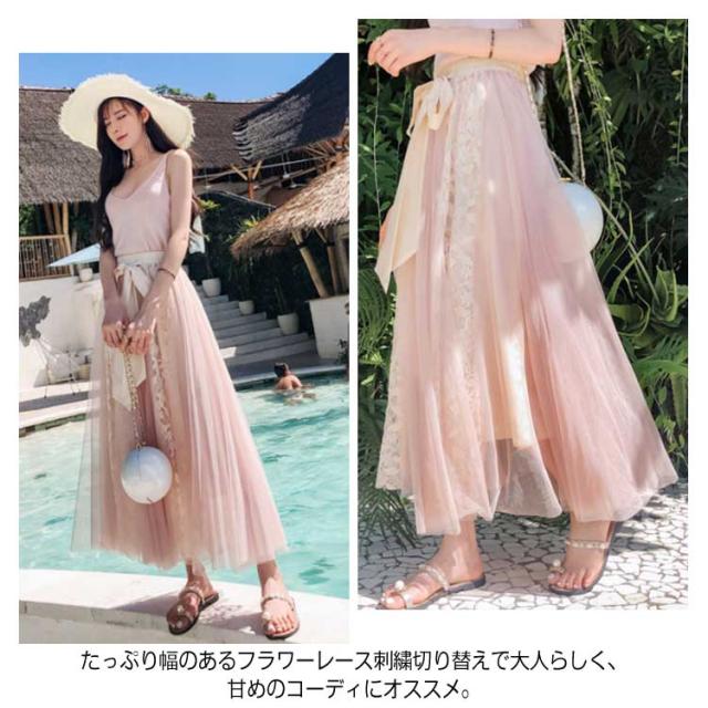 《》可憐なレース刺繍切り替え!フラワーレース 切り替え スカート レディース ロングスカート マキシ丈スカート Aラインスカート ロング丈 マキシ丈 ボトムス レース 刺繍 ふんわり 可愛い