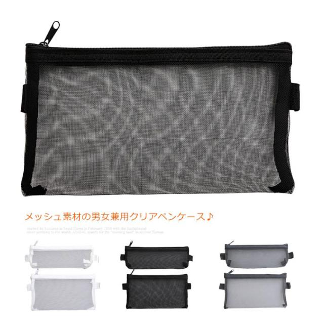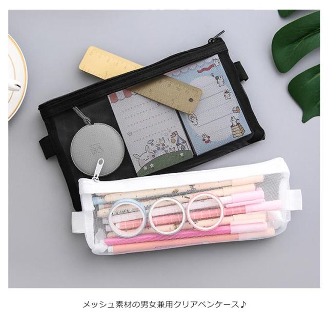 選べる2タイプ!ペンケース 筆箱 ふでばこ メッシュペンポーチ クリアペンケース 大容量 ペンポーチ 文房具収納 送料無料 男女兼用 収納ポーチ 筆入れ 男の子 女の子 入学祝い メッシュ 透明 軽量 無地 男子 女子 受験 ギフト プレゼント 学生 大人 シンプル おしゃれ 韓国風