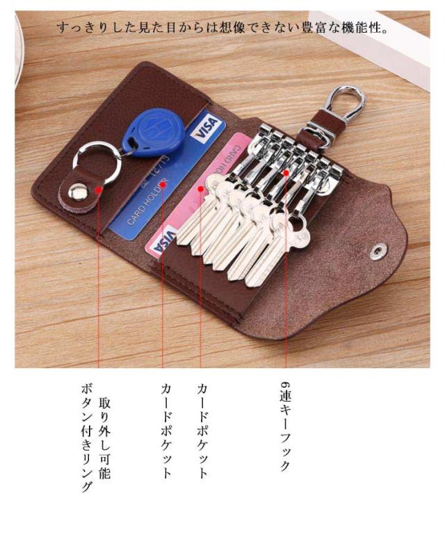 送料無料 レザー キーケース 6連フック カラビナ付き キーホルダー 車 鍵 メンズ レディース キーフック 牛革 小銭入れ 名入れ カードケース おしゃれ かわいい コンパクト 小さい シンプル