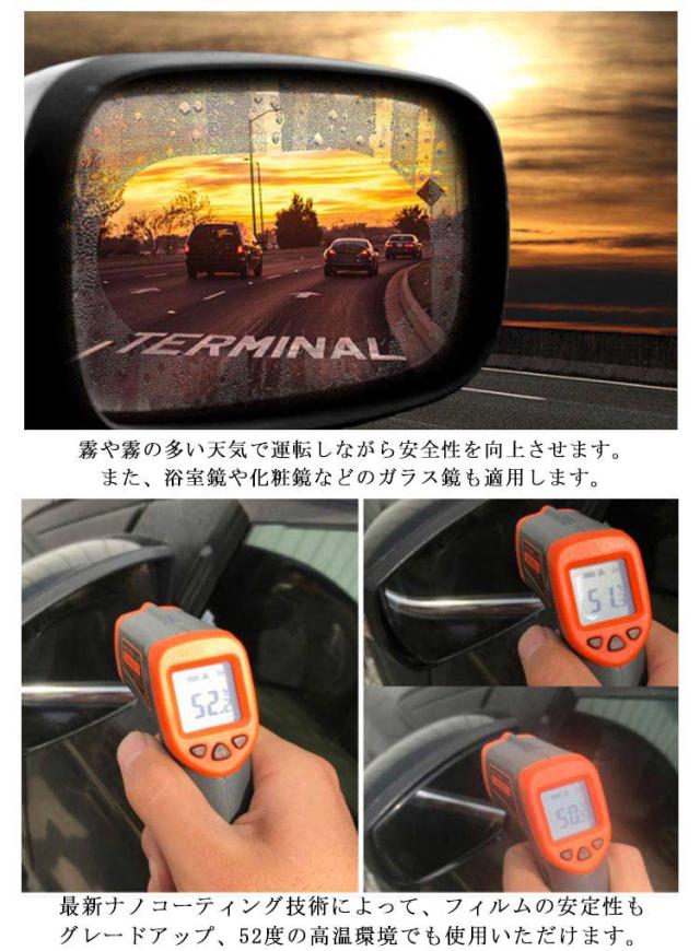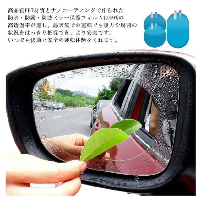 カーバックミラー防水フィルム バックミラーフィルム 車用 バックミラー ドアミラー撥水フィルム サイドミラー防水フィルム 汎用型 曇り止め アンチグレア 防雨防曇 雨除け 防霧 防眩 スクラッチ防止 安全運転 視界確保