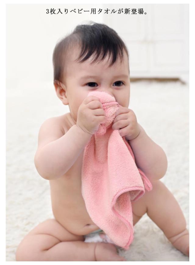 | 3枚入りベビー用タオルが新登場。 贅沢なボリュームと柔らかな肌触り。 ハンカチとしてもお使いいただけます。 | |