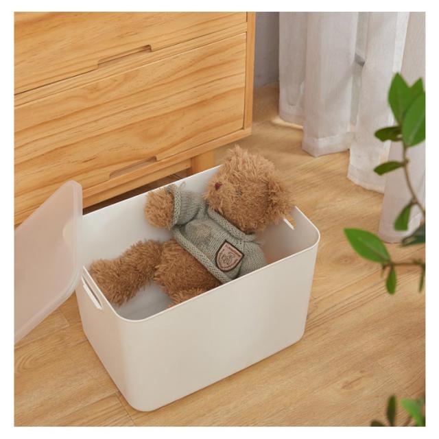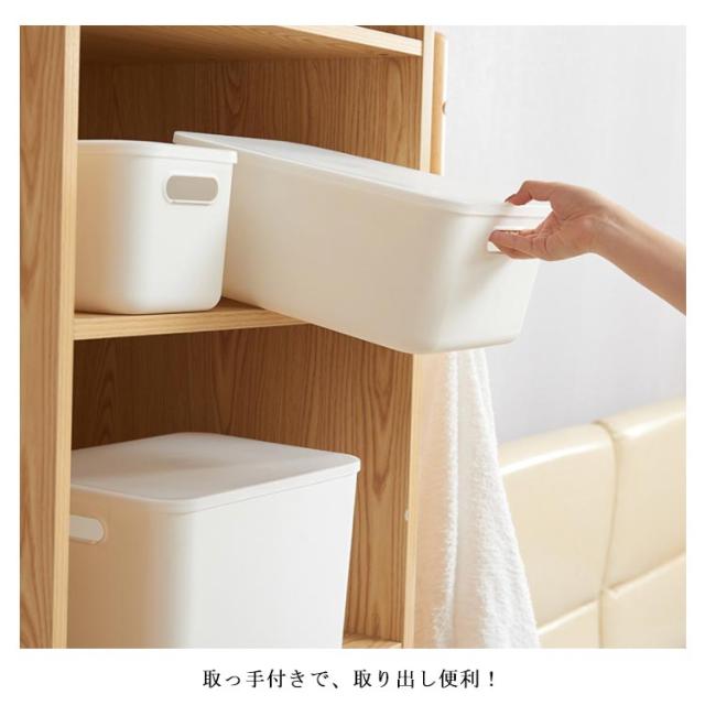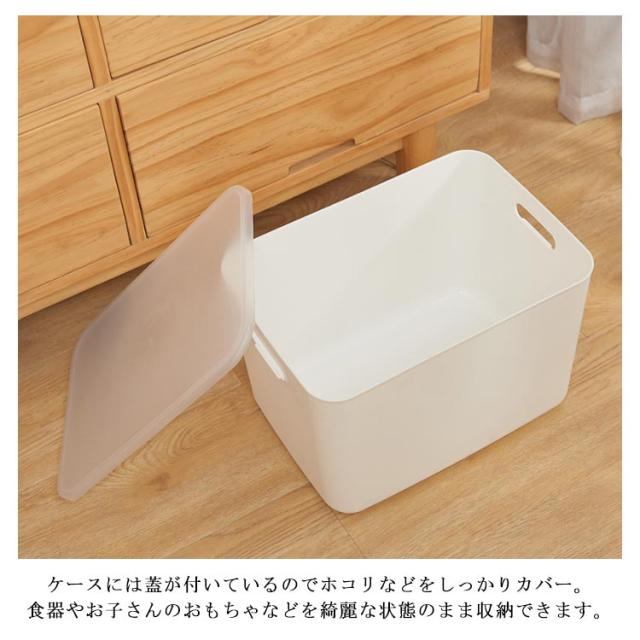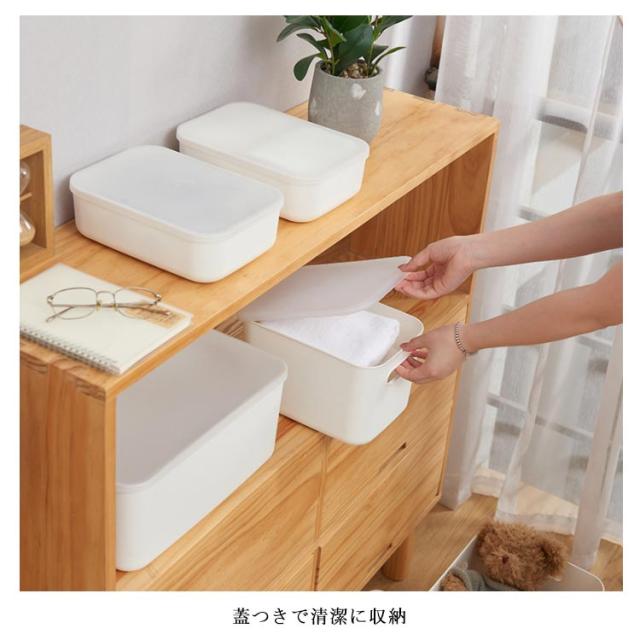 | シンプルで丸みのあるやわらかなデザインのフタ付き収納ボックス。 衣類、鞄、おもちゃ、コスメ、マスク、生理用品などの衛生用品や日用品等の収納にオススメ。 蓋つきで清潔に収納 ケースには蓋が付いているのでホコリなどをしっかりカバー。食器やお子さんのおもちゃなどを綺麗な状態のまま収納できます。 シンプルでどんなインテリアに馴染みやすい。 取っ手付きで、取り出し便利! | |