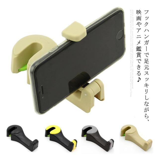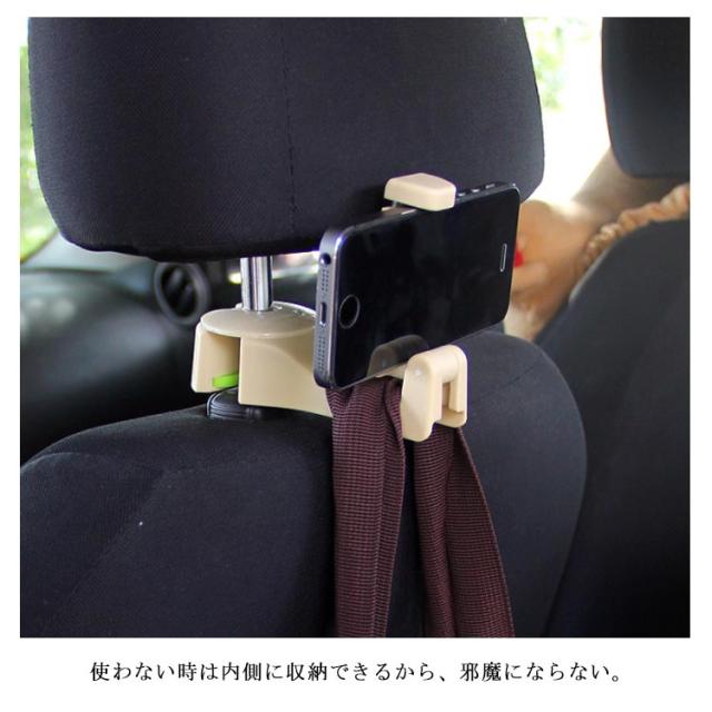 後部座席用 スマホ 車載ホルダー フック付き 多機能 荷物フック スマホスタンド ヘッドレストフック 車内 収納 便利グッズ 耐荷重10kg