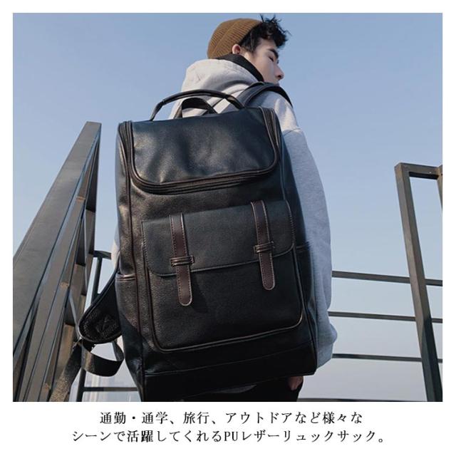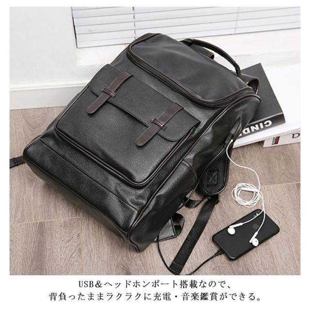 PUレザー リュックサック バックパック メンズ ビジネスリュック 大容量 ノートPC カジュアル おしゃれ A4 通勤 通学 USBポート リュック 四角 出張 旅行 カバン レディース