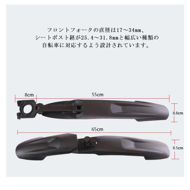 自転車フェンダー 延長タイプ 泥よけ マッドガード マウンテンバイク用 耐久性 強靭性 簡単取り付け 前後セット 角度調整可能 汎用