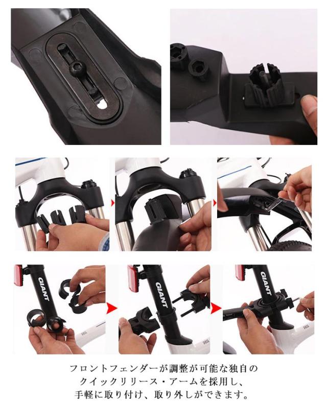 | 24インチから29インチのタイヤに対応します。デザインは工学的に考えられたもので、マウンテンバイクのシルエットをそのままに外観を崩さず装着できます。 フロントフォークの直径は17〜34mm、シートポスト経が25.4〜31.8mmと幅広い種類の自転車に対応するよう設計されています。 リアフェンダーは2カ所のピボットで、マッドガードと自転車のタイヤの間の角度は、最適ポジションを設定できます。壊しにくく耐久性の良いTPE材料を採用し、折り曲げても割れない。 フロントフェンダーが調整が可能な独自のクイックリリース・アームを採用し、手軽に取り付け、取り外しができます。 ロングタイプのデザインで、泥をちゃんと防ぎます。雨の日、自転車を楽しみながら、服と自転車を乾いた清潔な状態に保ちます。 | |