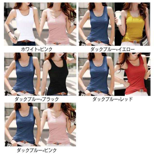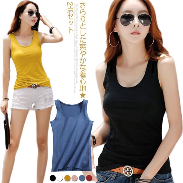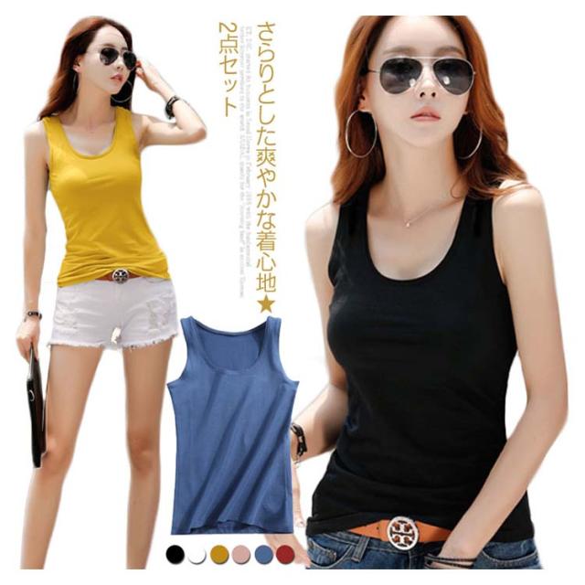 伸縮性の良いフライスリブ素材のタンクトップ♪タンクトップ ノースリーブ レディース