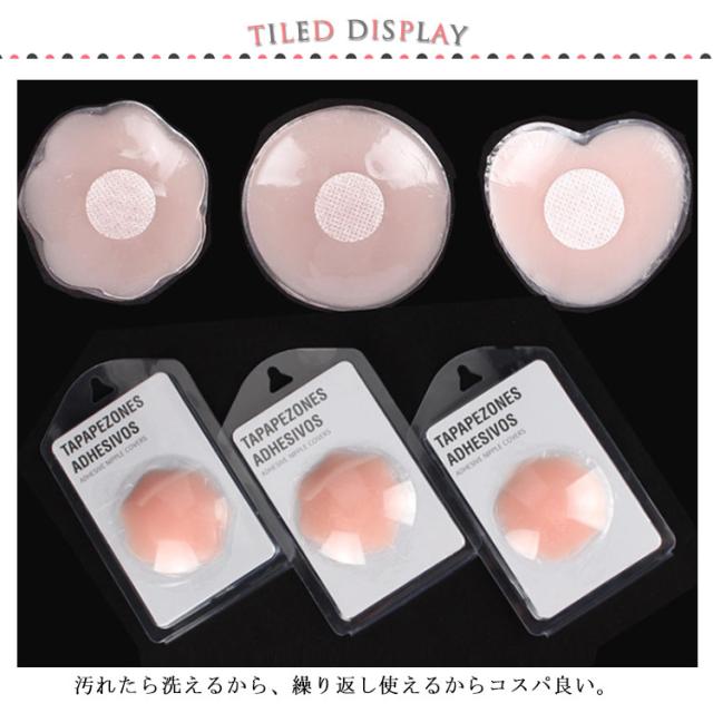 送料無料 全3タイプ ニップレス シリコンパッド 花型 丸型 ハート型 繰り返し 洗える ノーブラ レース 不織布付き ドレス用 薄着