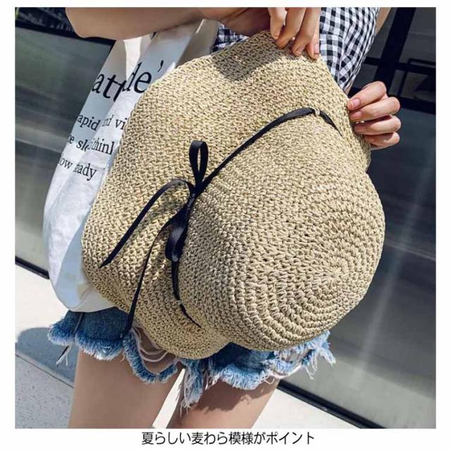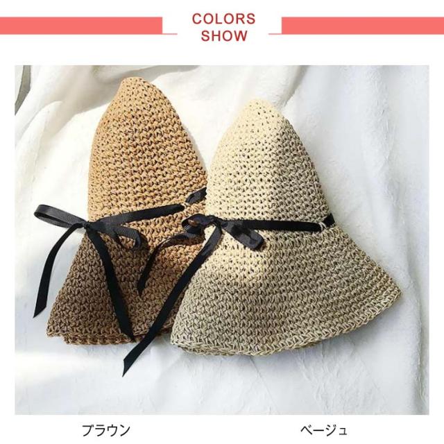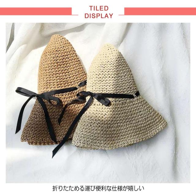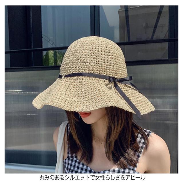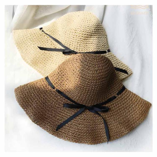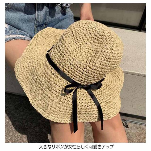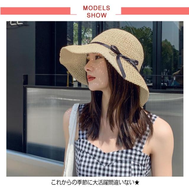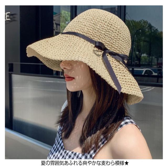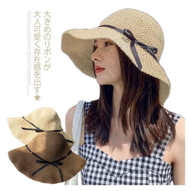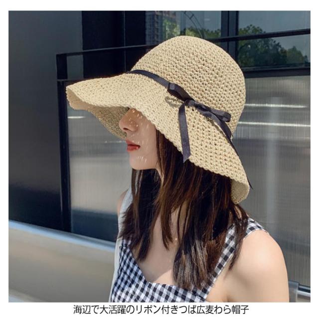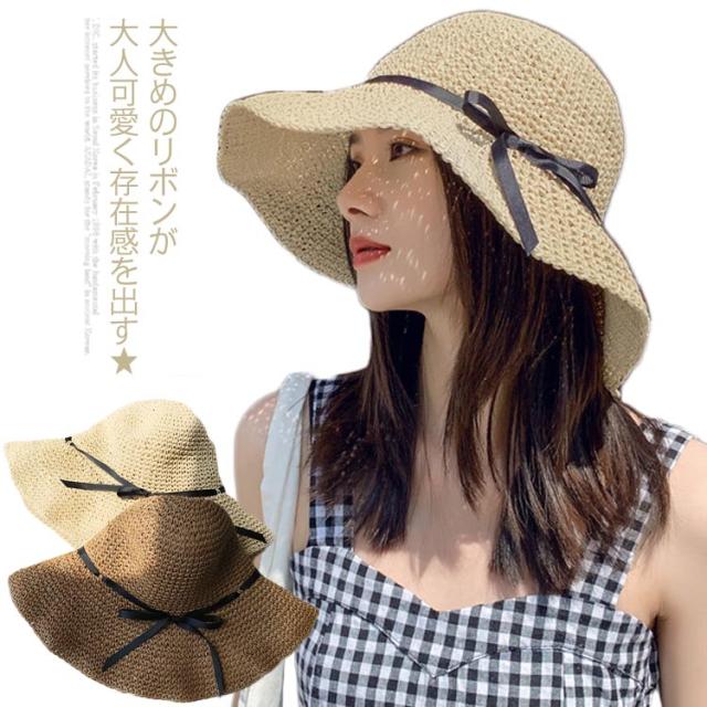 海辺で大活躍のリボン付きつば広麦わら帽子 麦わら帽子 レディース ハット