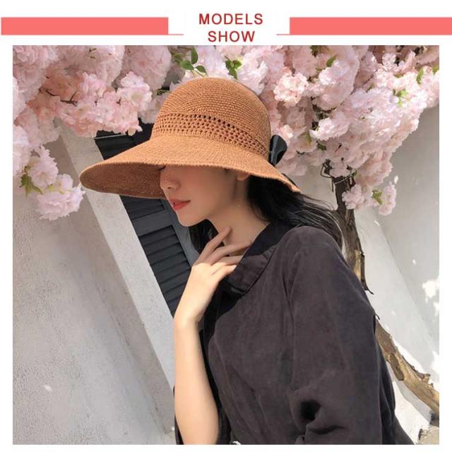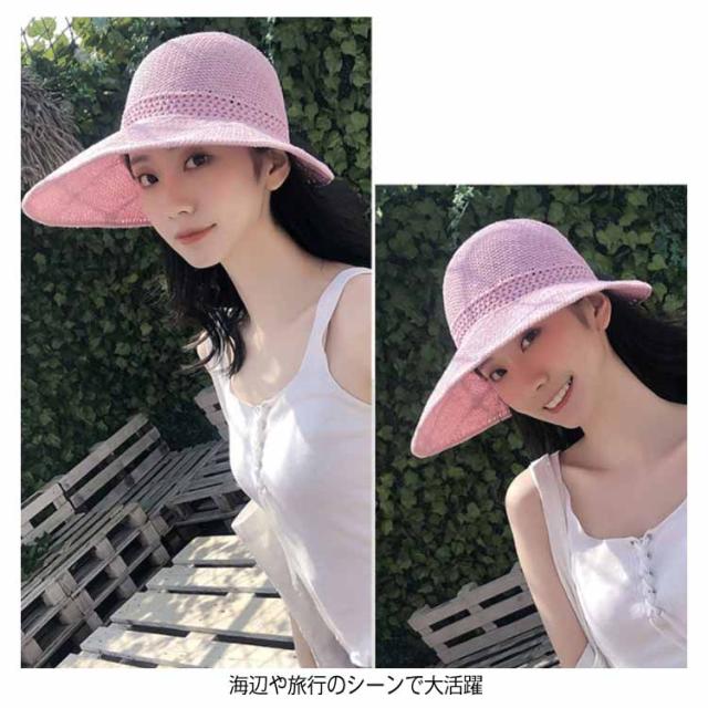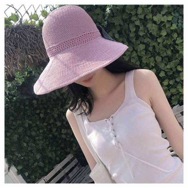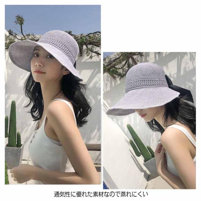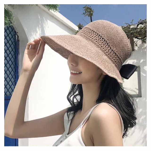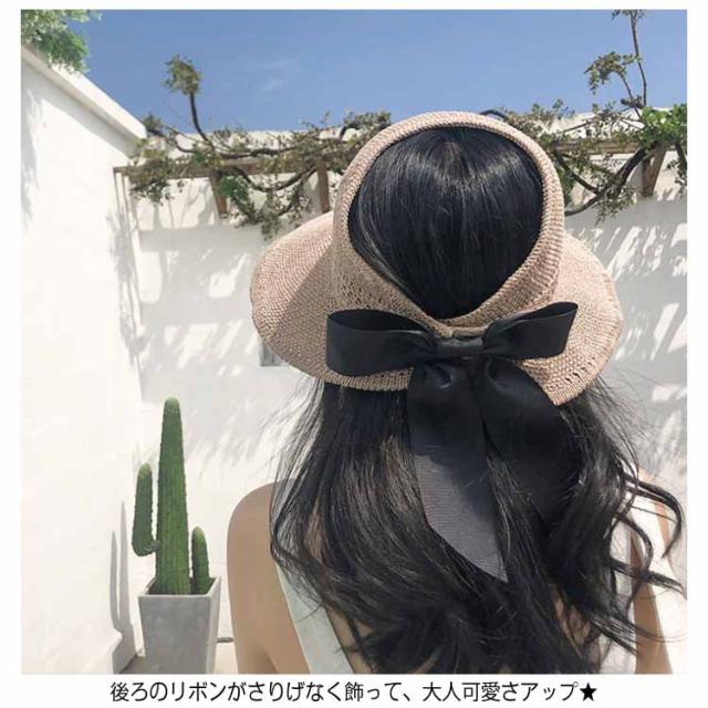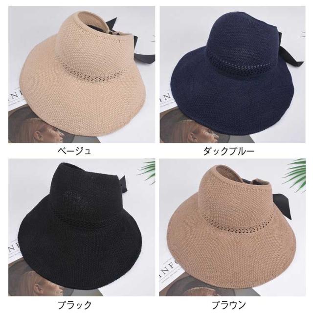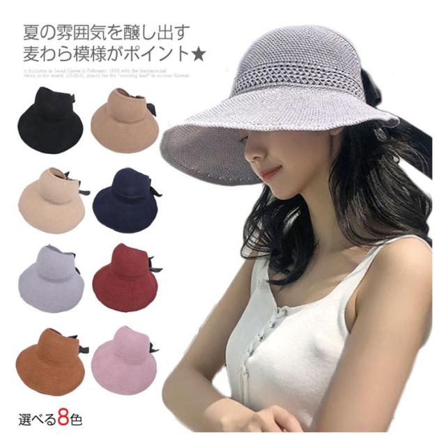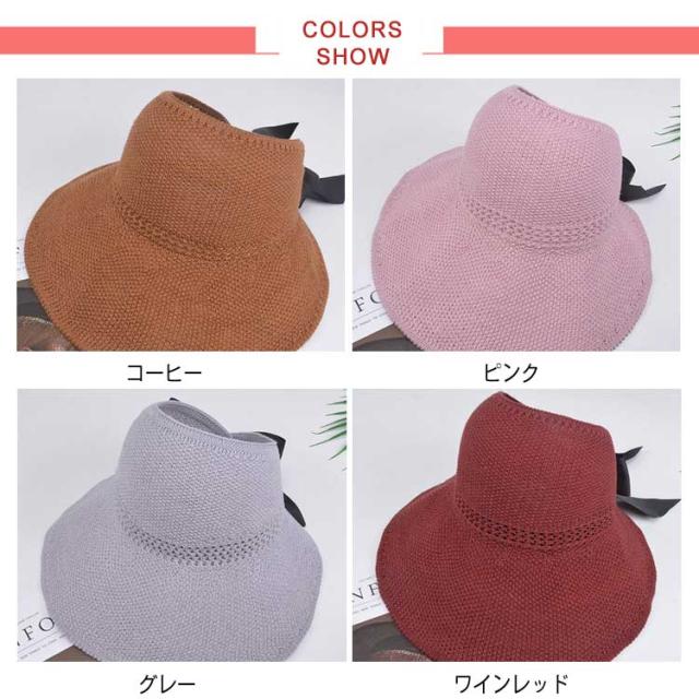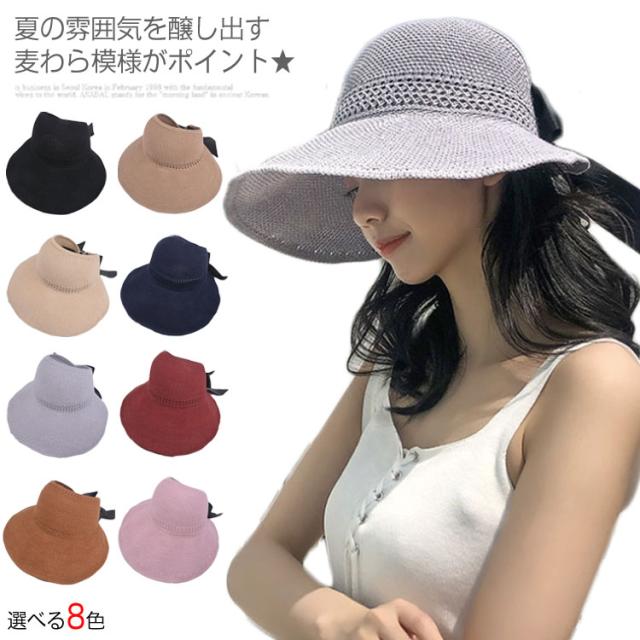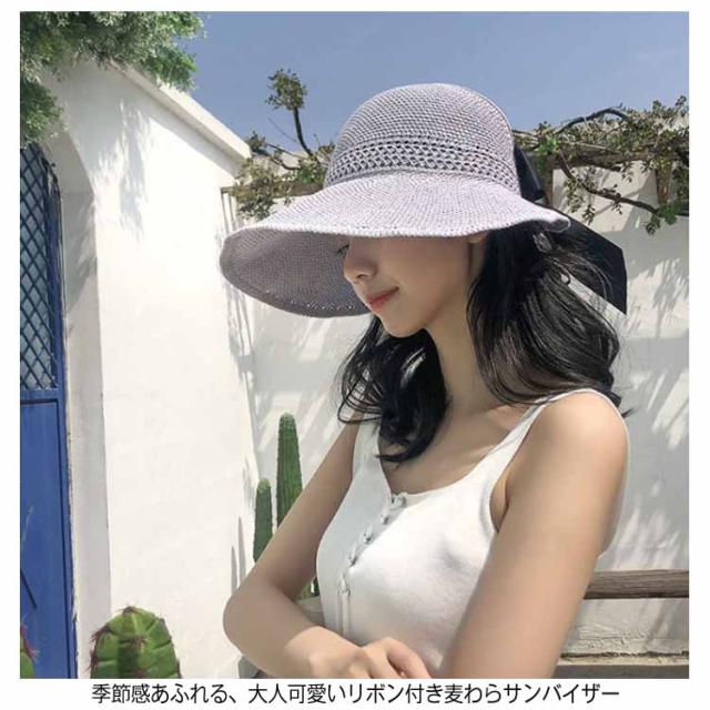 季節感あふれる、大人可愛いリボン付き麦わらサンバイザー サンバイザー レディース 麦わらサンバイザー