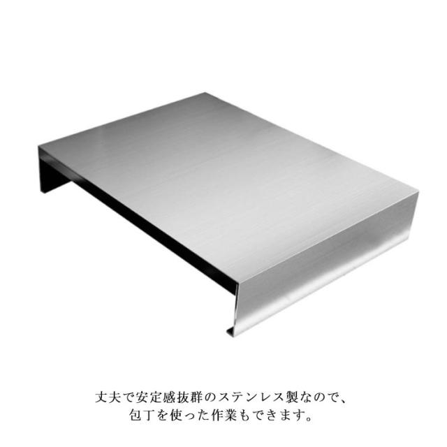 | ガスコンロの上に置くだけで作業台に早変わり! 限られたスペースを有効活用できるガスコンロカバー。 使っていないコンロの上にカバーをする事で作業スペースが増え、調理中のキッチンスペースを有効活用できます。 丈夫で安定感抜群のステンレス製なので、包丁を使った作業もできます。 全8サイズ展開で、1口や2口など様々なガスコロンに対応できます。 | |