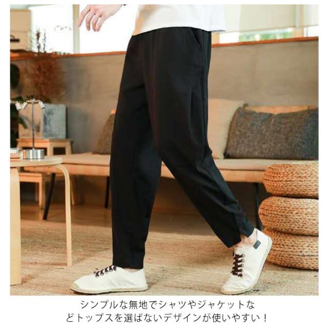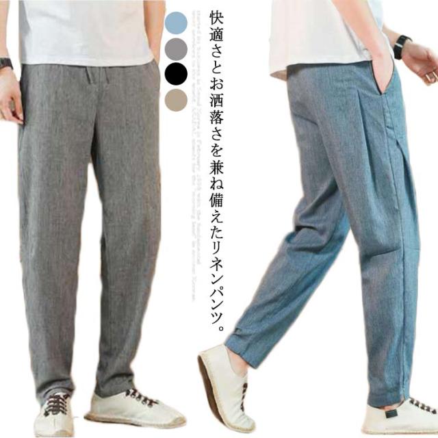 送料無料 M-5XL リネンパンツ メンズ ロング パンツ サルエルパンツ 綿麻 パンツ タックパンツ イージーパンツ ルームウェア リラックス パンツ 春 夏 ウェストゴム ポケットあり