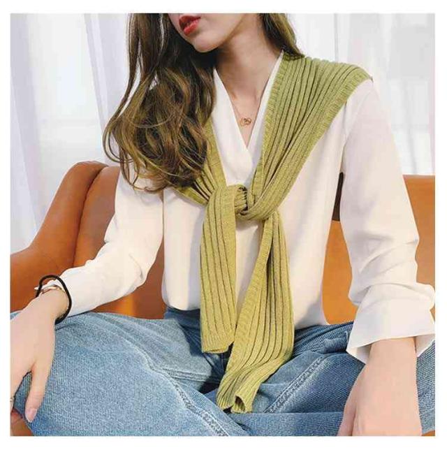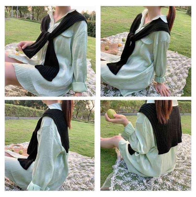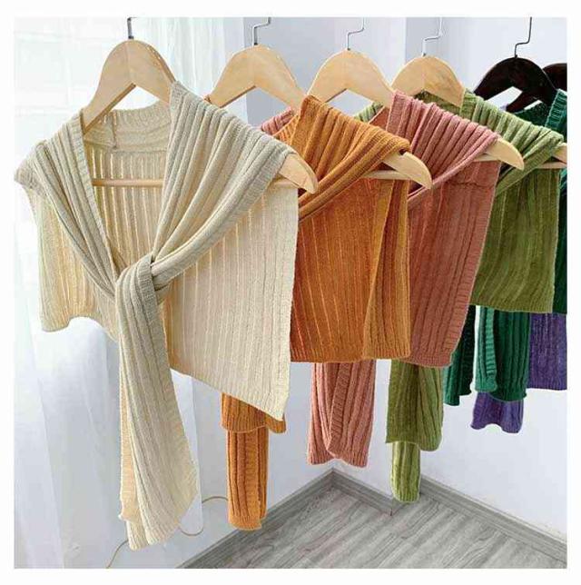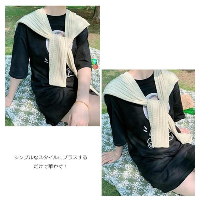 送料無料 全20色 肩かけニット ニット 付け襟 ボレロ 肩掛け専用 ニットカーディガン風 マフラー セーラー襟 差し色 冷え対策 ショール