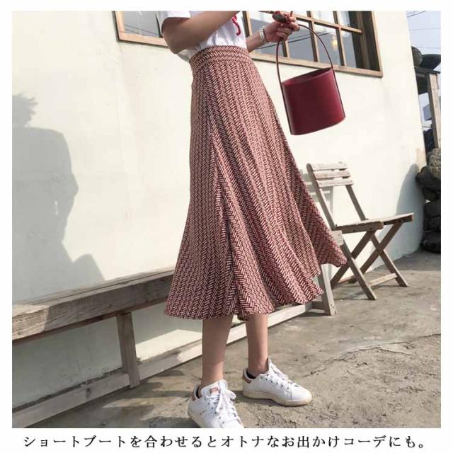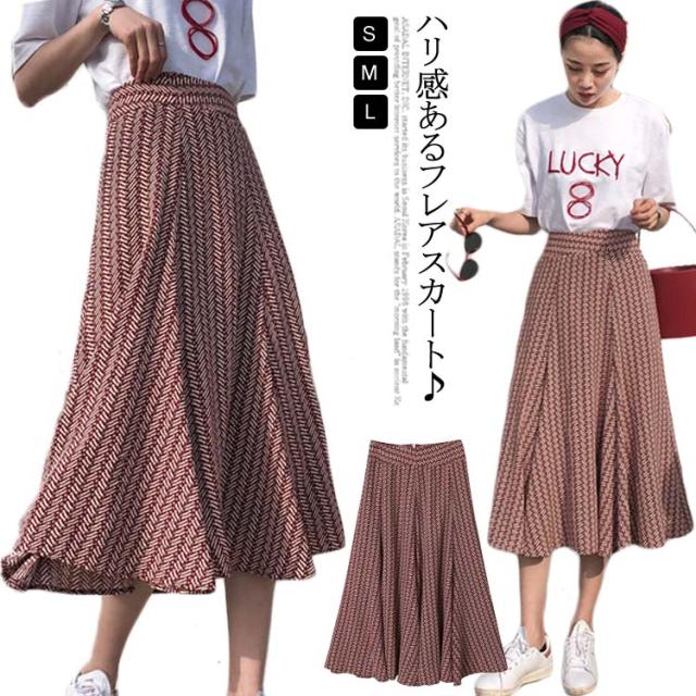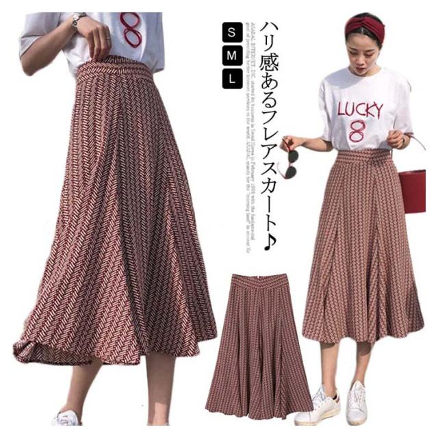 総柄スカート マーメイドスカート フレア レディース ミモレ丈 可愛い