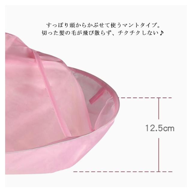 | 使い終わったらコンパクトに収納できるヘアエプロン♪ すっぽりかぶって装着も簡単。 ねじってたたんでコンパクトに収納できます。 | |
