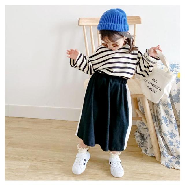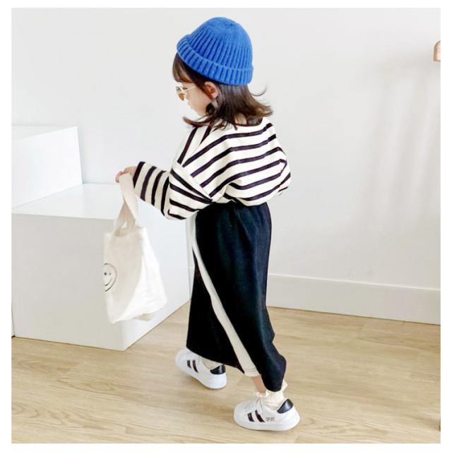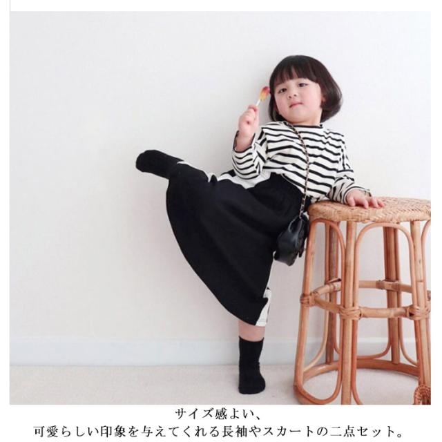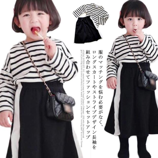子供服 長袖 スカート セットアップ カジュアル お洒落 ストライプ スカート キッズ 上下セット 春着 2点セット 子ども 可愛い セットアップ 卒園式 入学式 パーティ 春 秋 冬