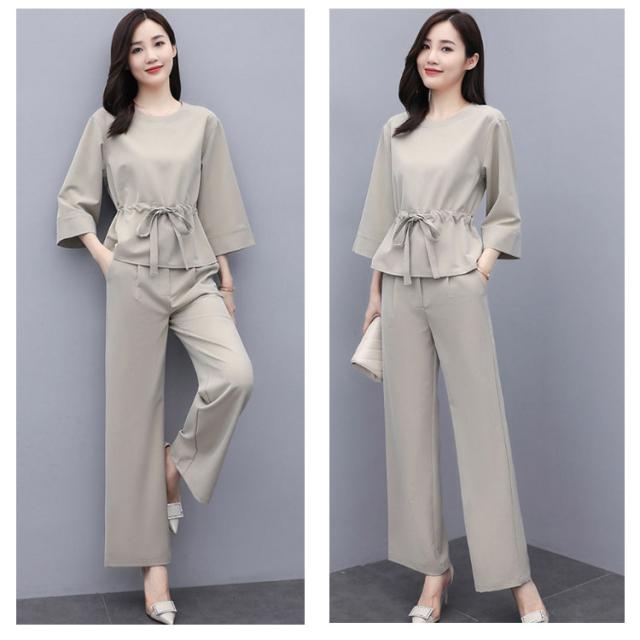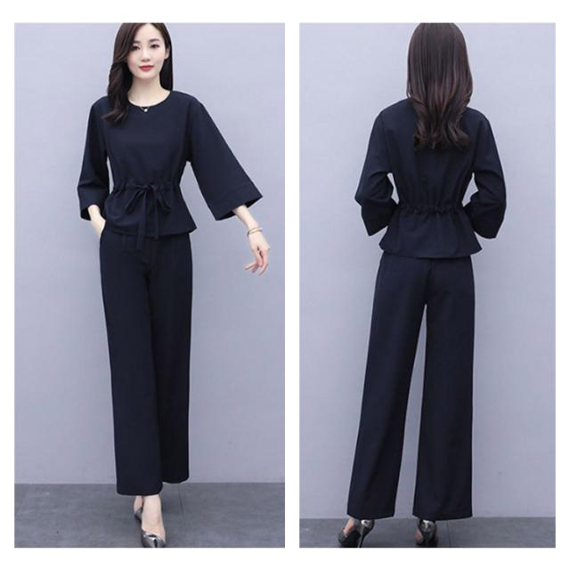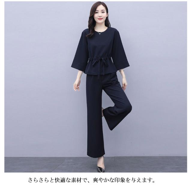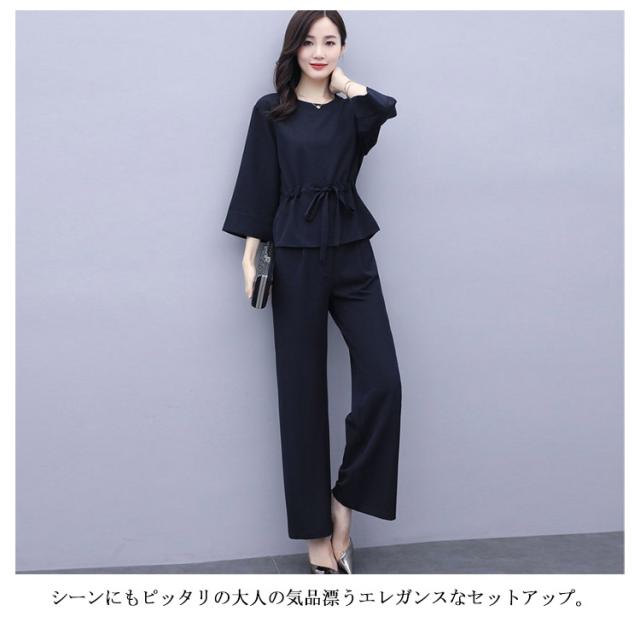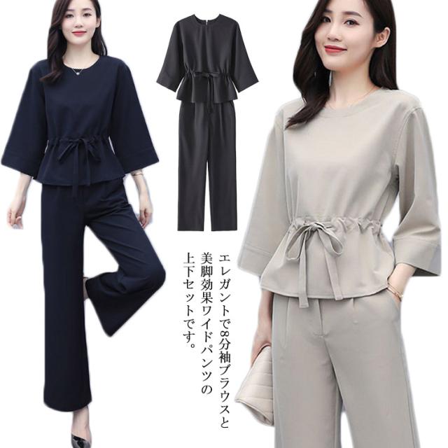 上下2点セット レディース セットアップ プルオーバートップス ワイドパンツ 9分丈 シンプル 無地 20代 30代 40代 春服 秋服 通勤着 カジュアル